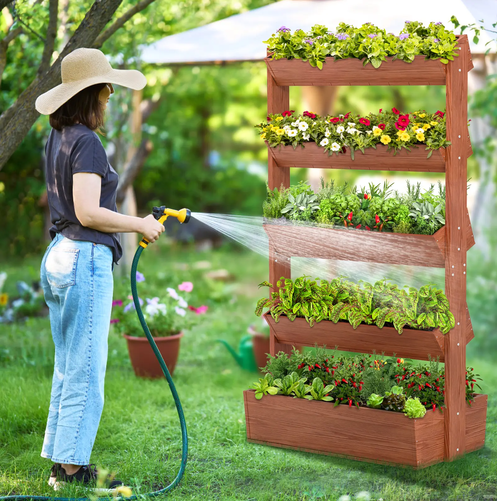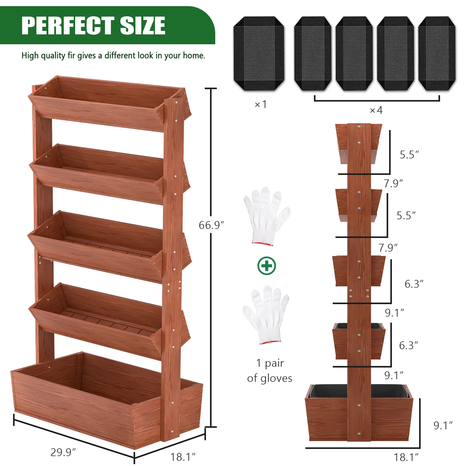 【DIVIDED PLANTING SPACE】With 5 separate planter boxes, the wood elevated planter offers the freedom to cultivate a variety of plant species without obstructing the others, such as fruits, herbs, vegetables, fruits.