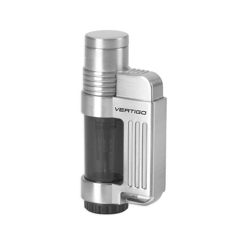 The Vertigo Jolt is designed for basic lighting needs. It features a rugged appearance, ensuring reliability. A single push ignites the wind-resistant jet flame effortlessly. The transparent fuel tank makes refills easy to notice. Compact enough for a pocket, the Jolt is a reliable daily tool.
