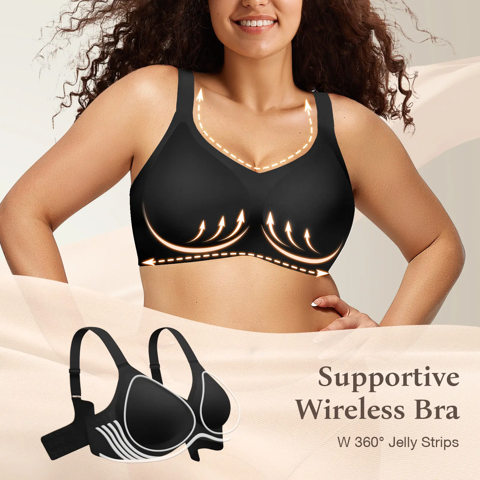 ·Wirefree Lift Bra - All-Day Support Without Poking or Digging: Say goodbye to painful wires but keep the perfect lift! This wireless bra with support and lift delivers the ideal balance of all-day comfort and natural shaping. W-shaped jelly strips (100% wire-free) provide 360° support without digging or poking. 3D Contour Cups adapt to your unique shape for a naturally lifted, hourglass silhouette. Breathable semi-fixed pads stay securely in place (no slipping!)
