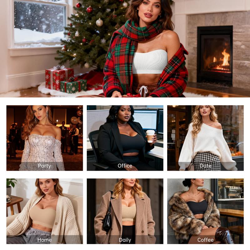 ·Ultra-Soft & Comfortable Bras – These bandeau bras are crafted from high-quality, breathable fabric that feels gentle against your skin. The stretchy design hugs your curves perfectly for a seamless fit, while the double-layer construction ensures full coverage—never see-through!