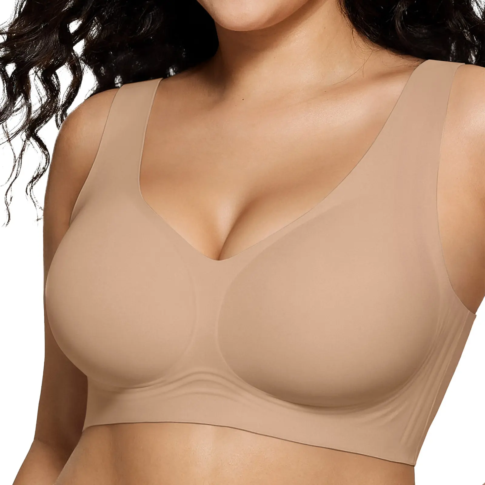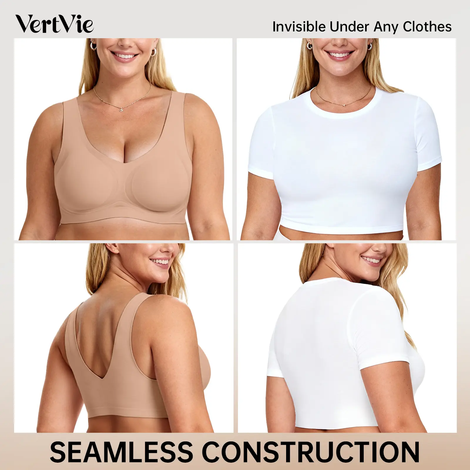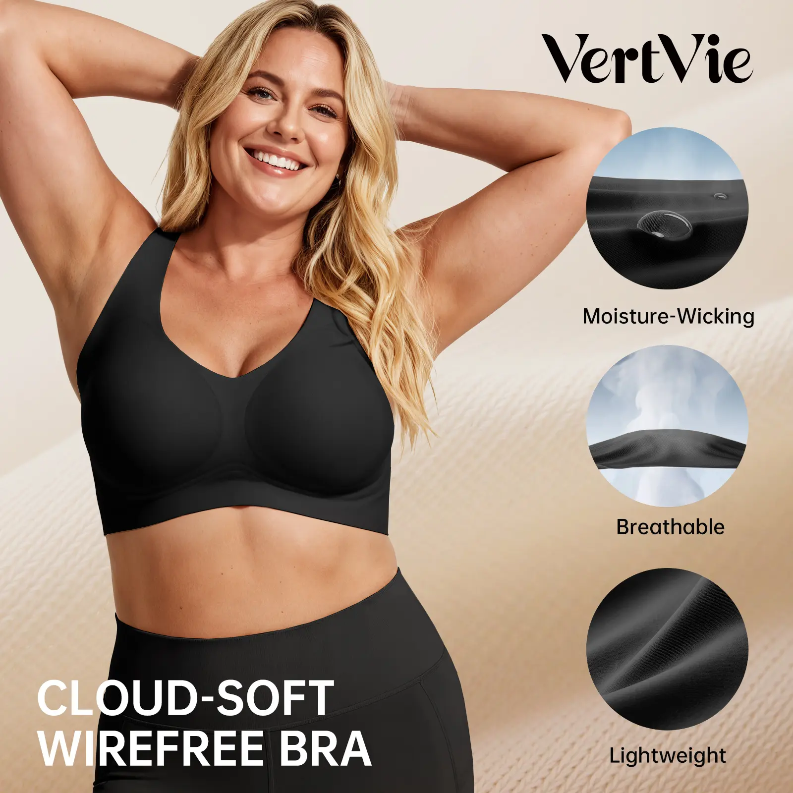 ·YOUR EVERYDAY ESSENTIAL - The elegant V-neckline and stylish V-back provide a secure fit, full coverage, and a modern silhouette. From yoga sessions and lazy Sundays to busy workdays and errands, this versatile bra has you covered. Wear it as an everyday bra, sleep bra, lounge bra, sports bra, maternity Bra or minimizer bra. It’s the perfect fusion of comfort, style, and simplicity for your modern lifestyle