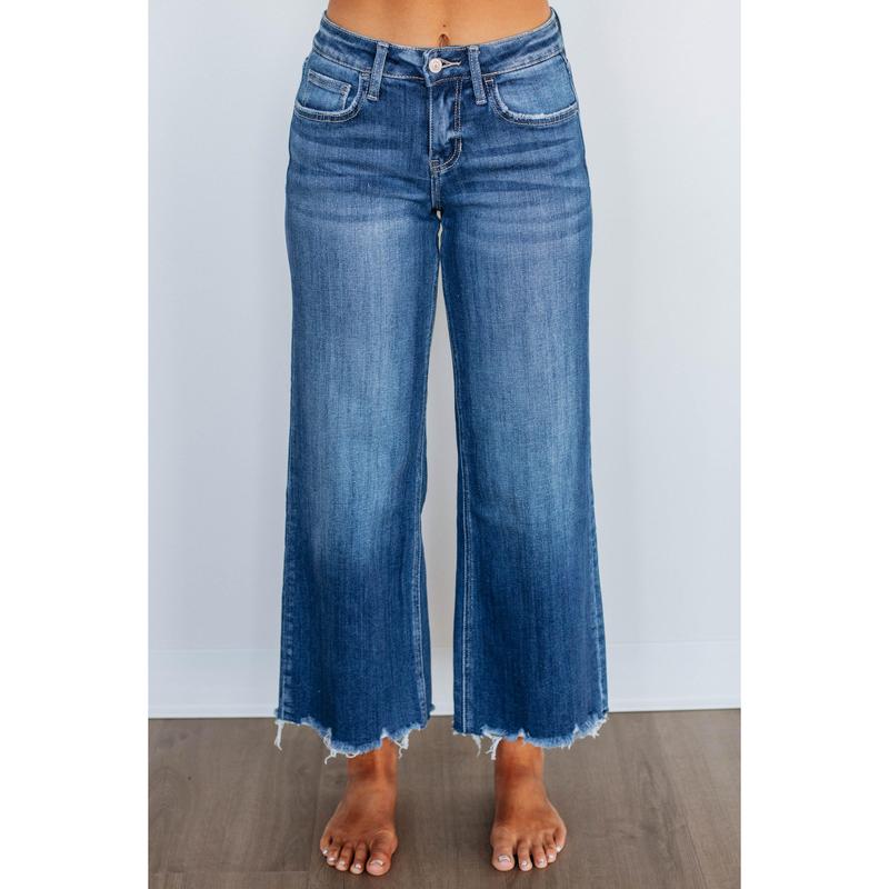 Judy Blue LAST KISS Mid-Rise Tummy Control Crop Wide Leg Denim Jeans