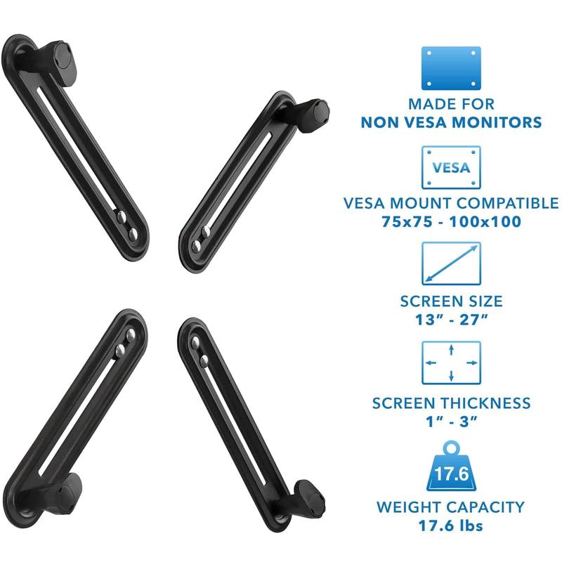 There are some monitors that don't have VESA compatible bolt holes on the back. This doesn't mean that you have to miss out from enjoying monitor wall mounts or desk mounts. Since these monitors are being prevented from a more ergonomic solution, simply attach this VESA adaptor to your non-VESA compatible monitor and attach it to the desired monitor desk mounts and stands.