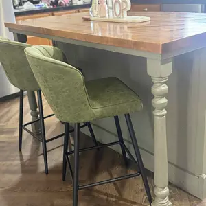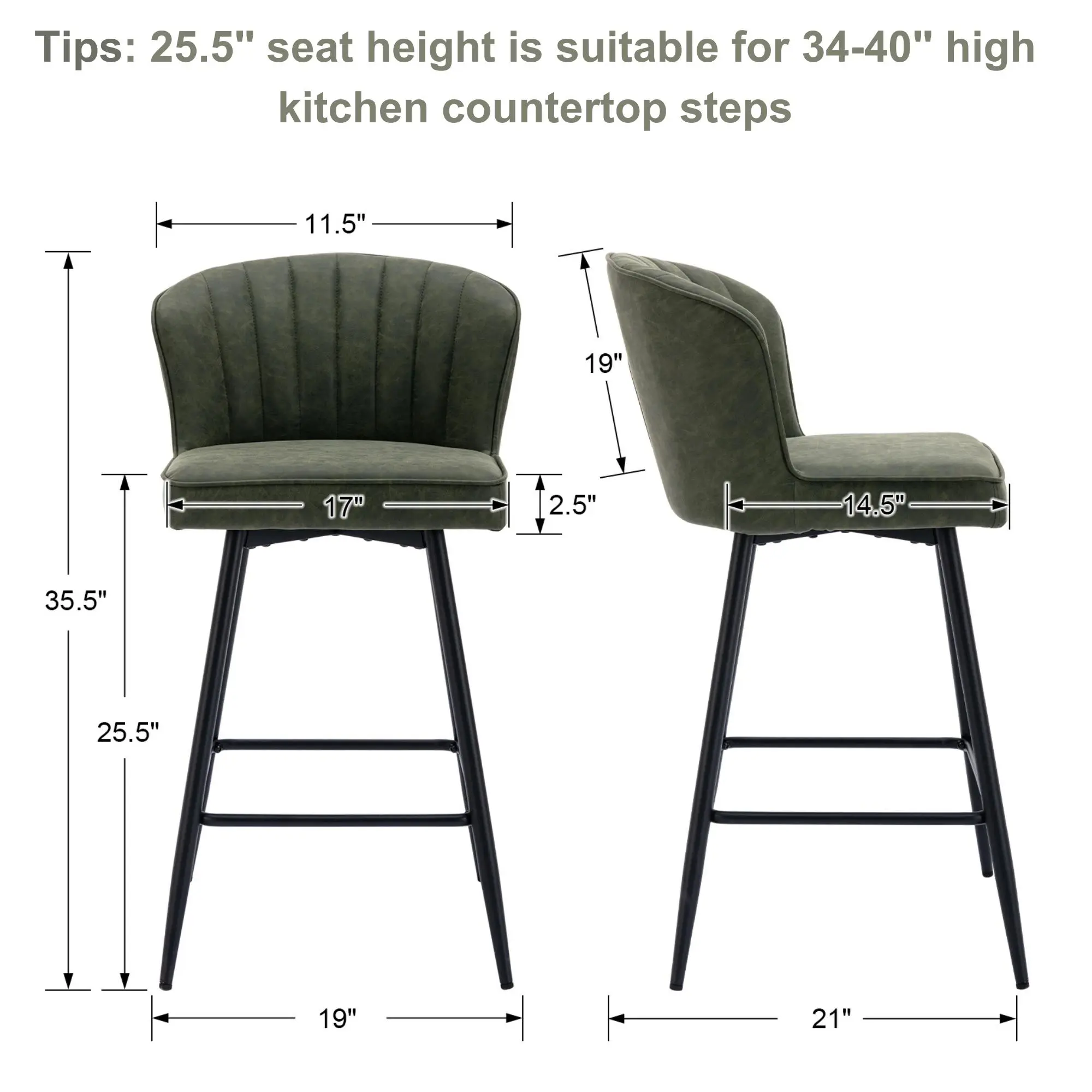 【Premium Fabric】: The unique shape and premium faux leather make this island stool stand out. Its waterproof function makes it easy to clean. The 25.5-inch seat height is suitable for kitchen countertop steps that are 34-40 inches high.