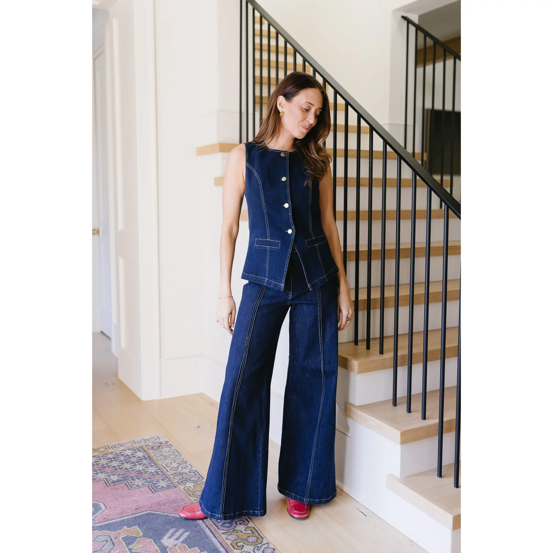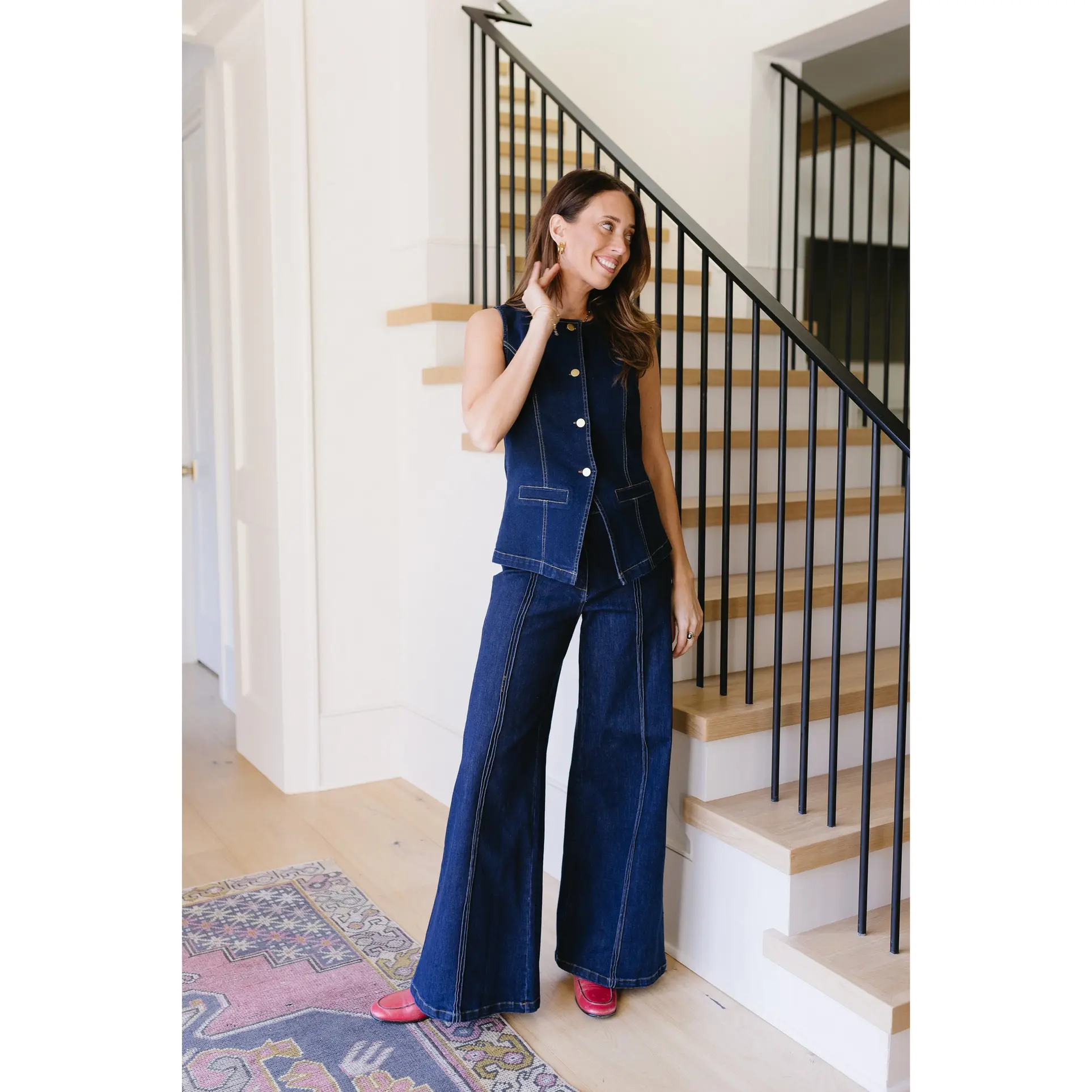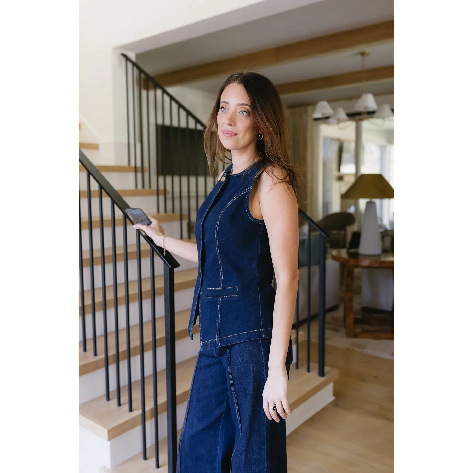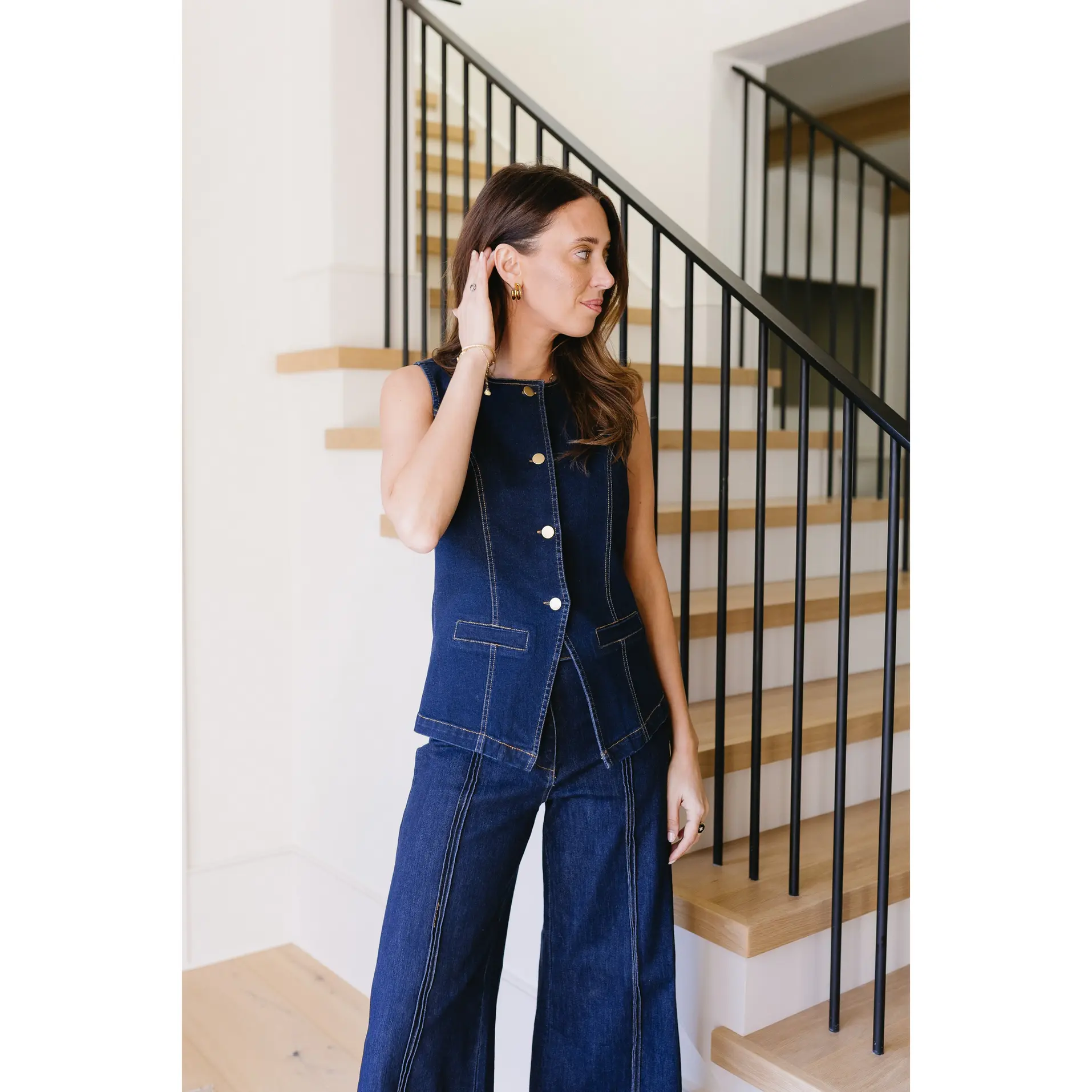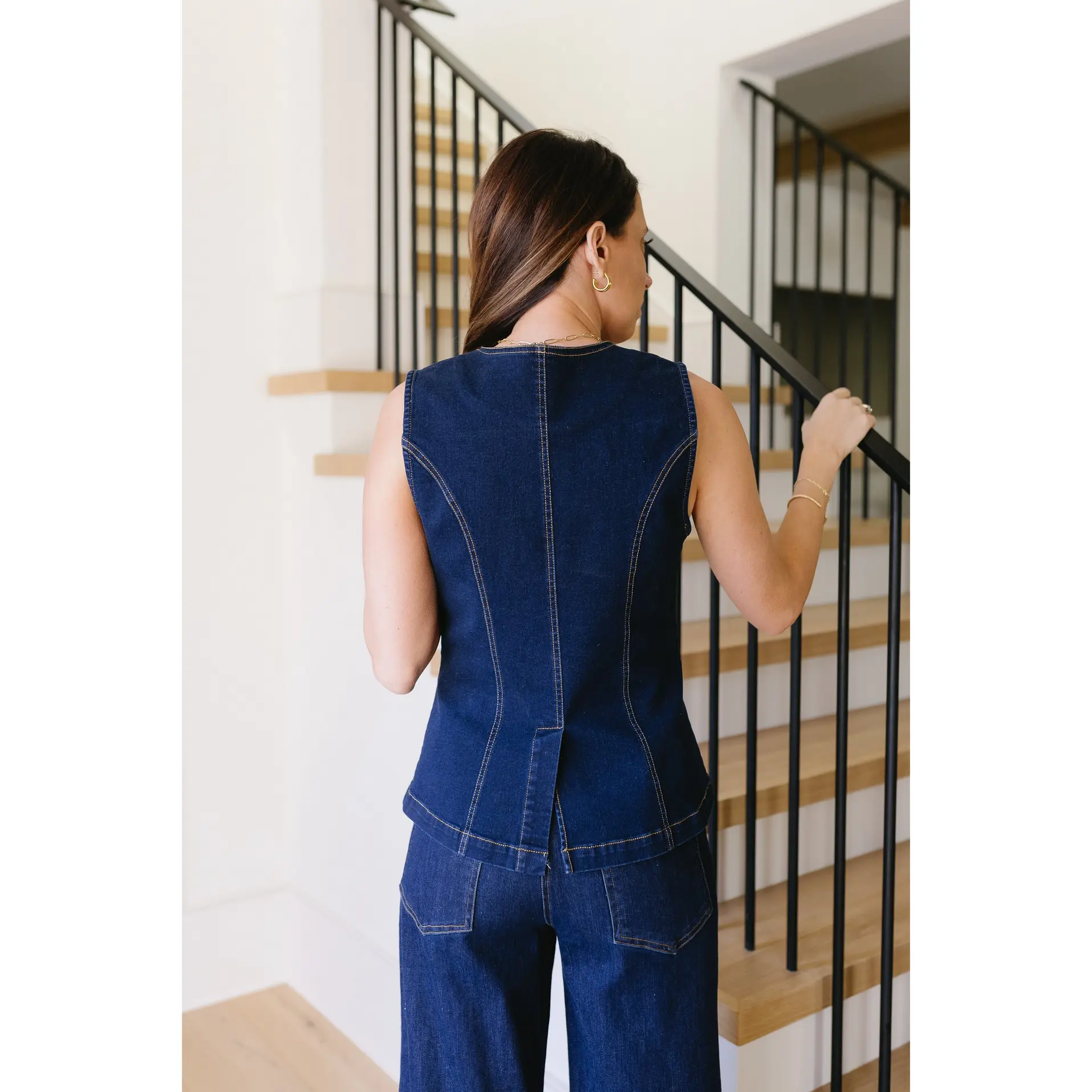 ·Dark wash denim top