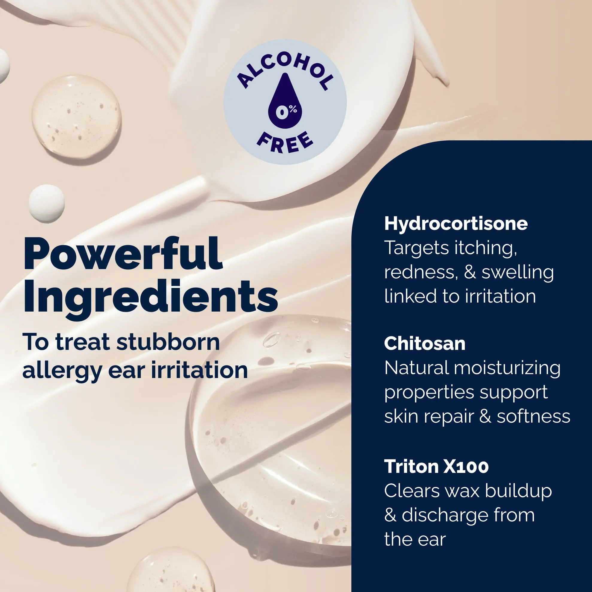 ·1% Hydrocortisone - Targets itching, redness, and swelling linked to inflammation and ear infection