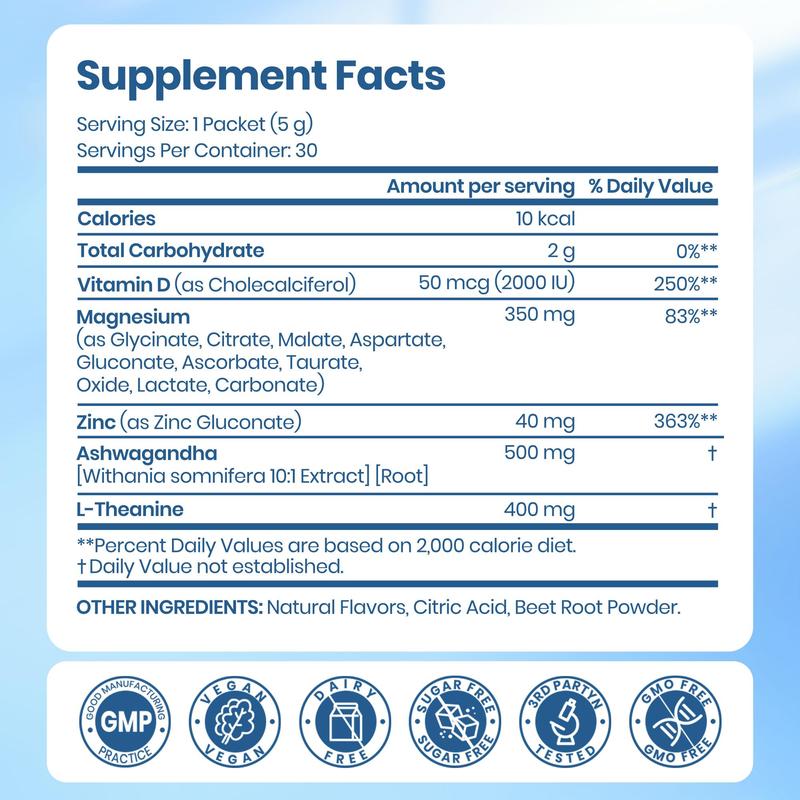 ·Key Ingredients: This supplement includes Ashwagandha, L-Theanine, and Vitamin D. It supports cortisol management and helps calm and relaxation.