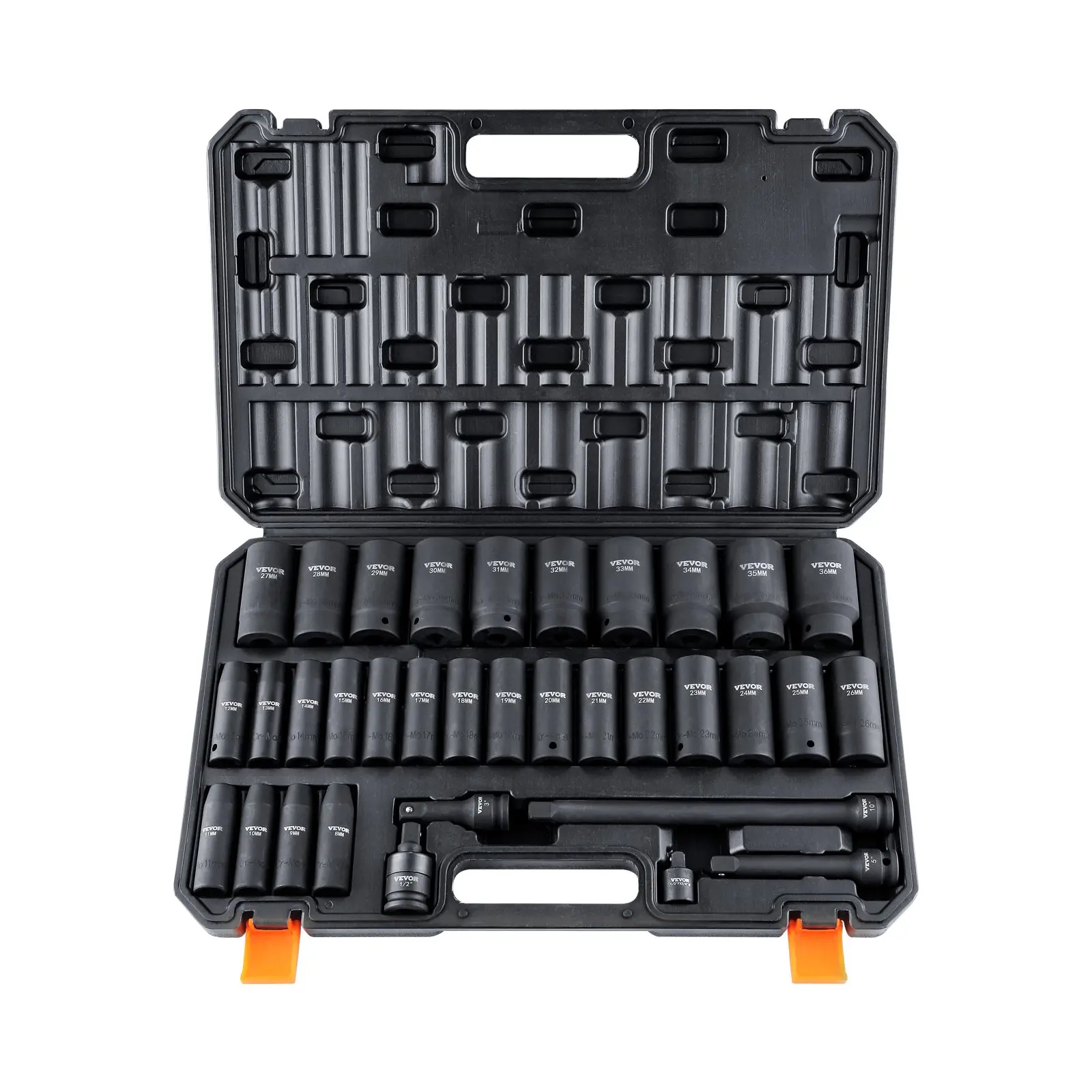 ·Abundant Components: This comprehensive set includes an array of components, such as deep sockets 8mm, 9mm, 10mm, 11mm, 12mm, 13mm, 14mm, 15mm, 16mm, 17mm, 18mm, 19mm, 20mm, 21mm, 22mm, 23mm, 24mm, 25mm, 26mm, 27mm, 28mm, 29mm, 30mm, 31mm, 32mm, 33mm, 34mm, 35mm, 36mm. Other components include extension bars in lengths of 3",5",10", 1/2" impact universal adapter, 1/2"F x 3/8"M adapter.