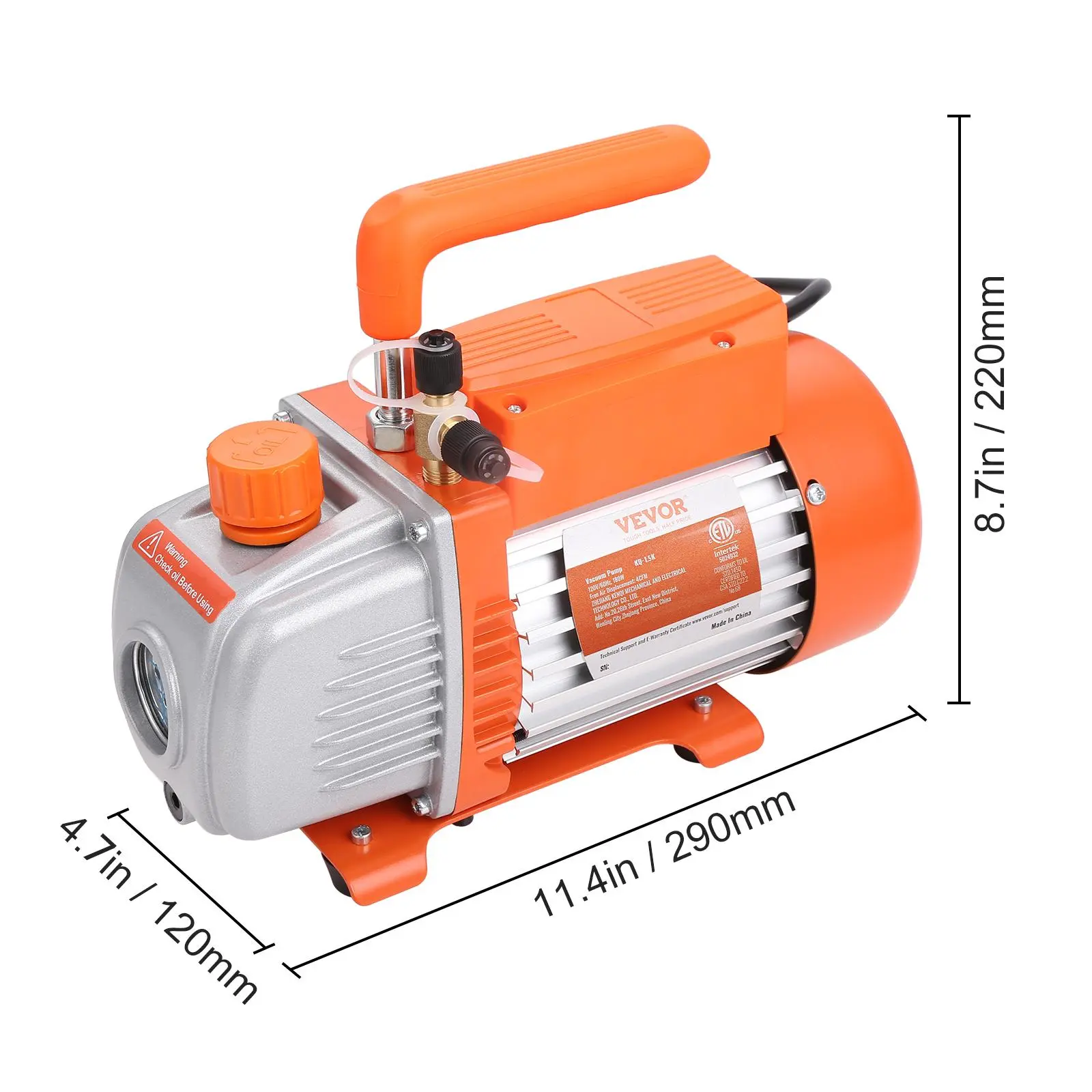 5. VEVOR 1/4 HP 4 CFM AC Vacuum Pump and Gauge Set, TikTokShopBlackFriday, Single Stage Rotary Vane HVAC Air Vacuum Pump A/C Refrigerant Kit Manifold Gauge Set, with Three-Color Hose Carry Bag, Applicable to R134a, R410a
