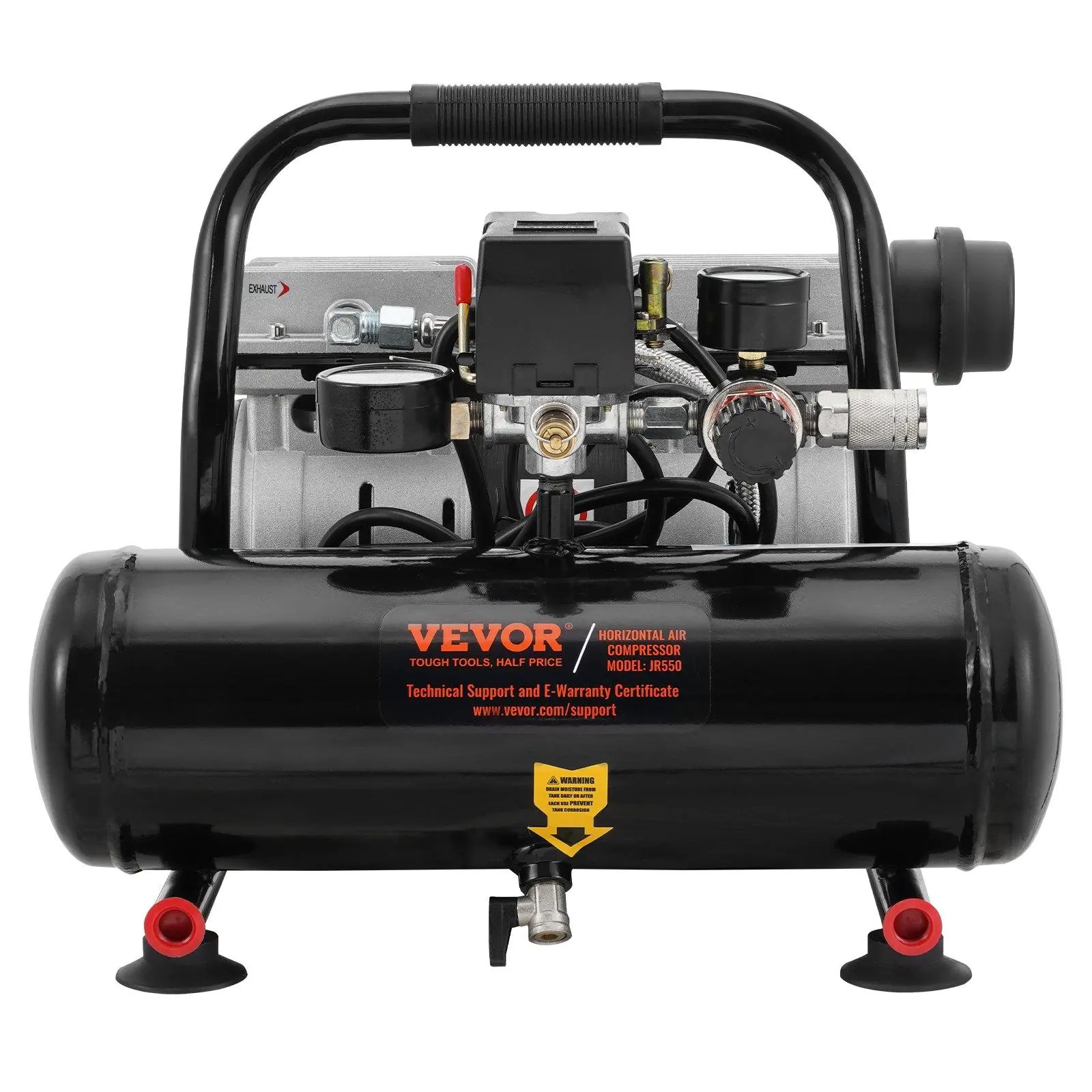 ·Security Comes First: The air compressor tank is equipped with large cooling fan and automatic overheating protection to prevent damage. In addition, when the current or storage pressure is too high, the compressor will automatically shut off or provide pressure relief protection.