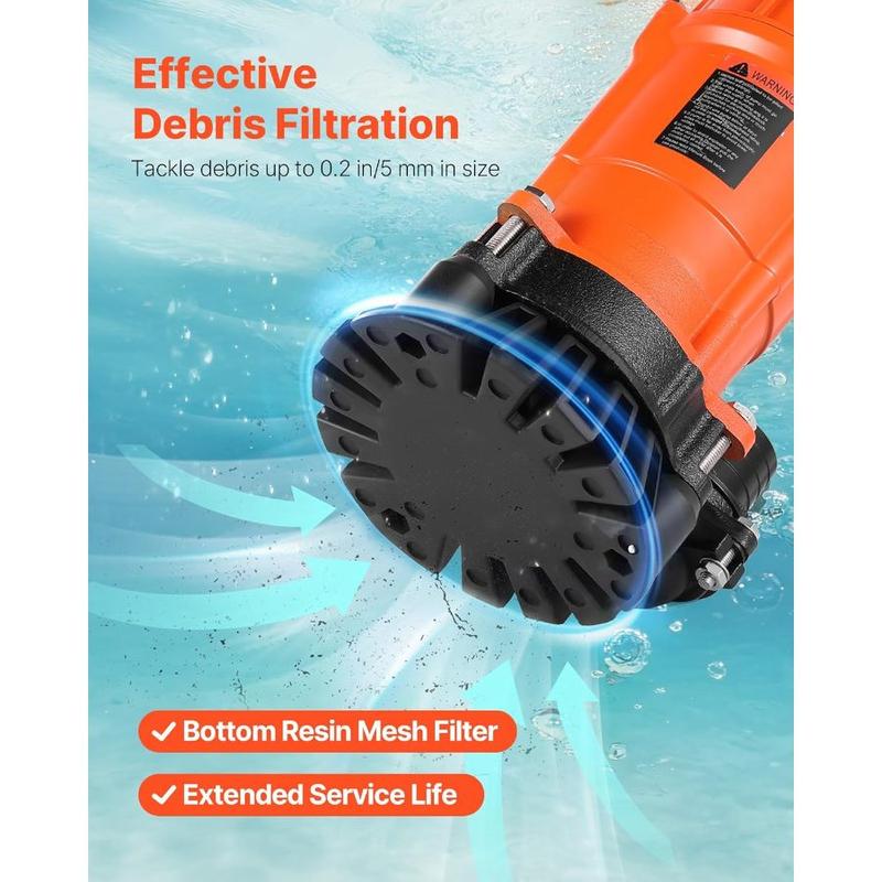 VEVOR 1 HP Submersible Trash Pump, 5000 GPH, 120V Cast Iron Submersible Sump Sewage Pump with 3 in Discharge, 40 ft Max Lift, Drain Dirty Clean Water, for Pools, Garden, Pond, Basement, Flooded AreasVEVOR 1 HP Submersible Trash Pump, 5000 GPH, 120V Cast Iron Submersible Sump Sewage Pump with 3 in Discharge, 40 ft Max Lift, Drain Dirty Clean Water, for Pools, Garden, Pond, Basement, Flooded Areas