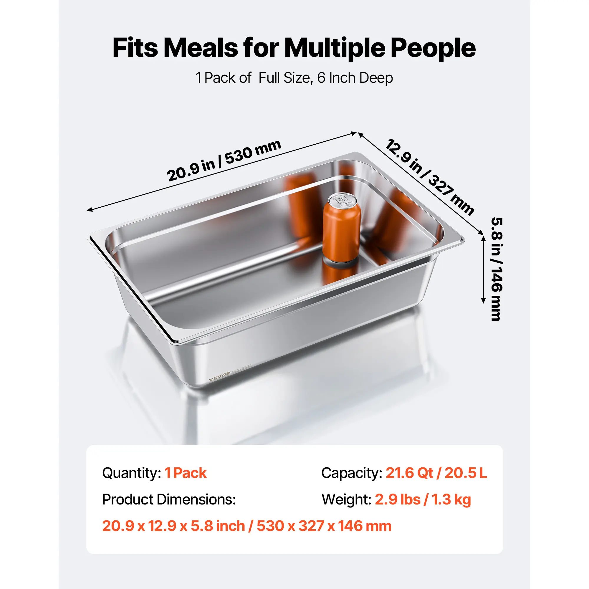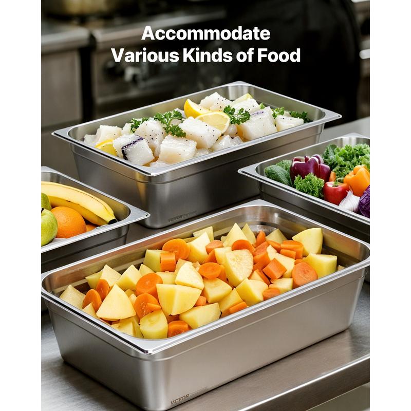 • Ample Food Capacity: This 1/1 size Stainless Steel Steam Pan (6 inch deep, 1-pack) offers a generous capacity of 20.5 L / 82 Qt, meeting your everyday cooking needs. Ideal for cooking, storing, and serving food, it's great for holding meat, vegetables, fruits, ice cream, and more