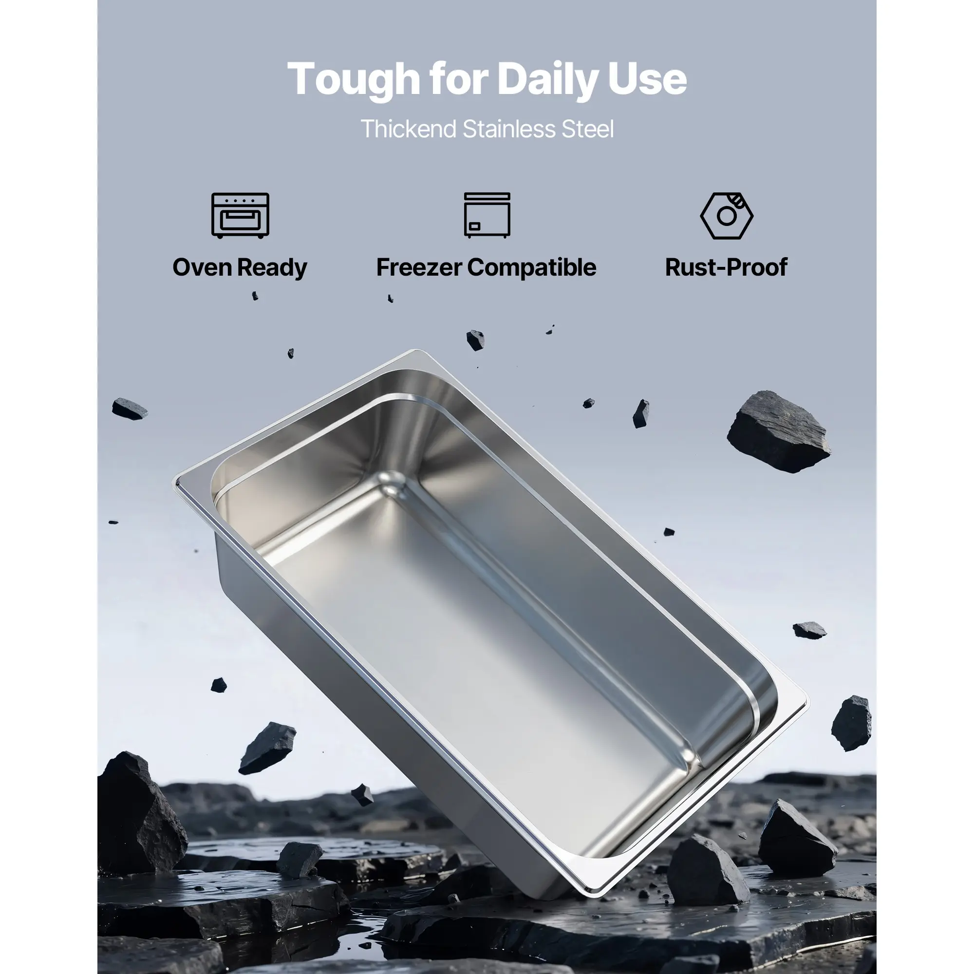 • Thoughtful Design: This Stainless Steel Food Pan features unique anti-sticking stacking lugs that enhance structural strength. It offers greater durability and makes stacking and storage more convenient with easy separation