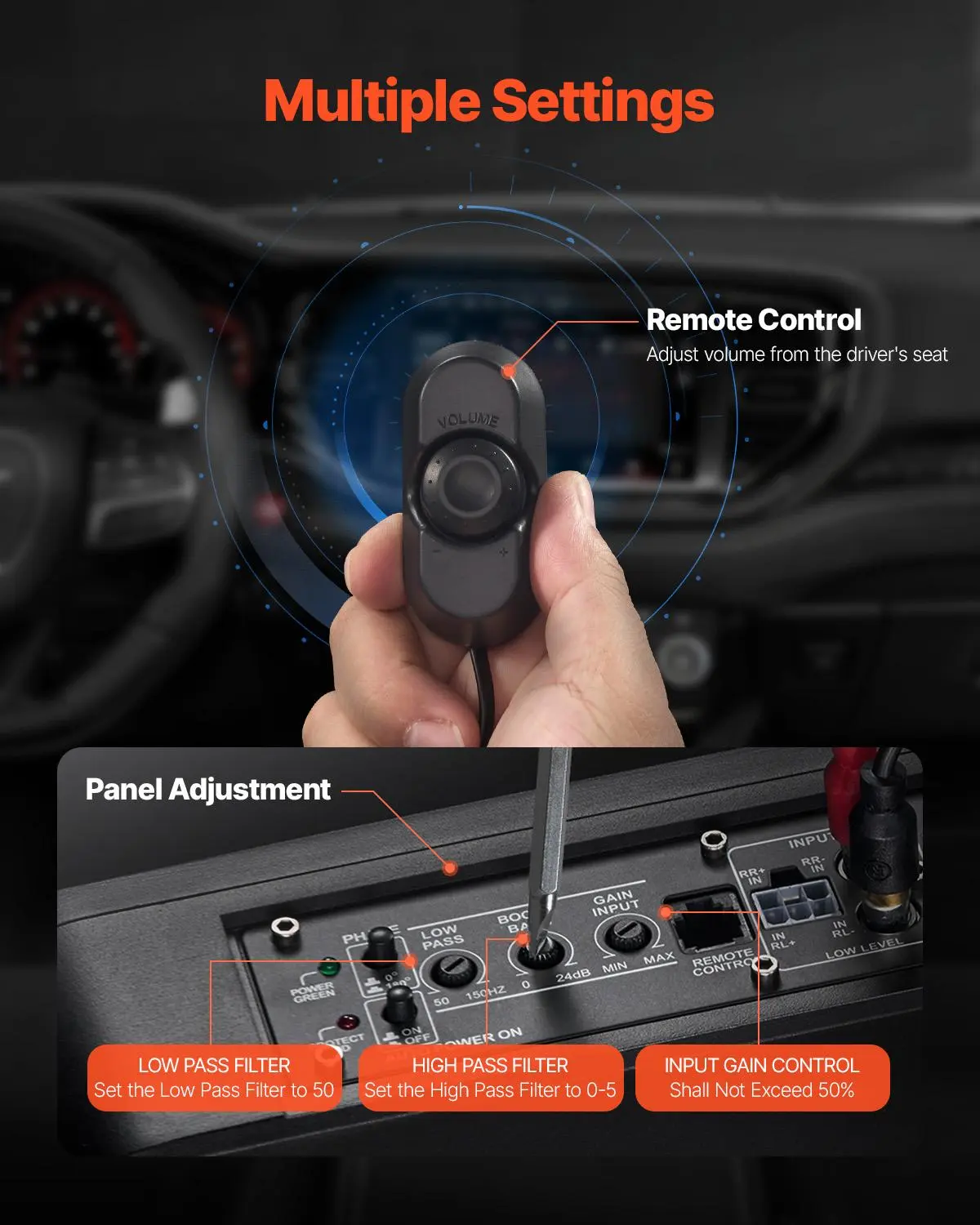 • Highly Compatible: This under seat car truck subwoofer offers multiple signal input options, supporting both low-level RCA inputs and high-level inputs. It also includes a high-to-low level converter, ensuring compatibility with a wide range of car audio system, whether or not the main unit is equipped with RCA output.