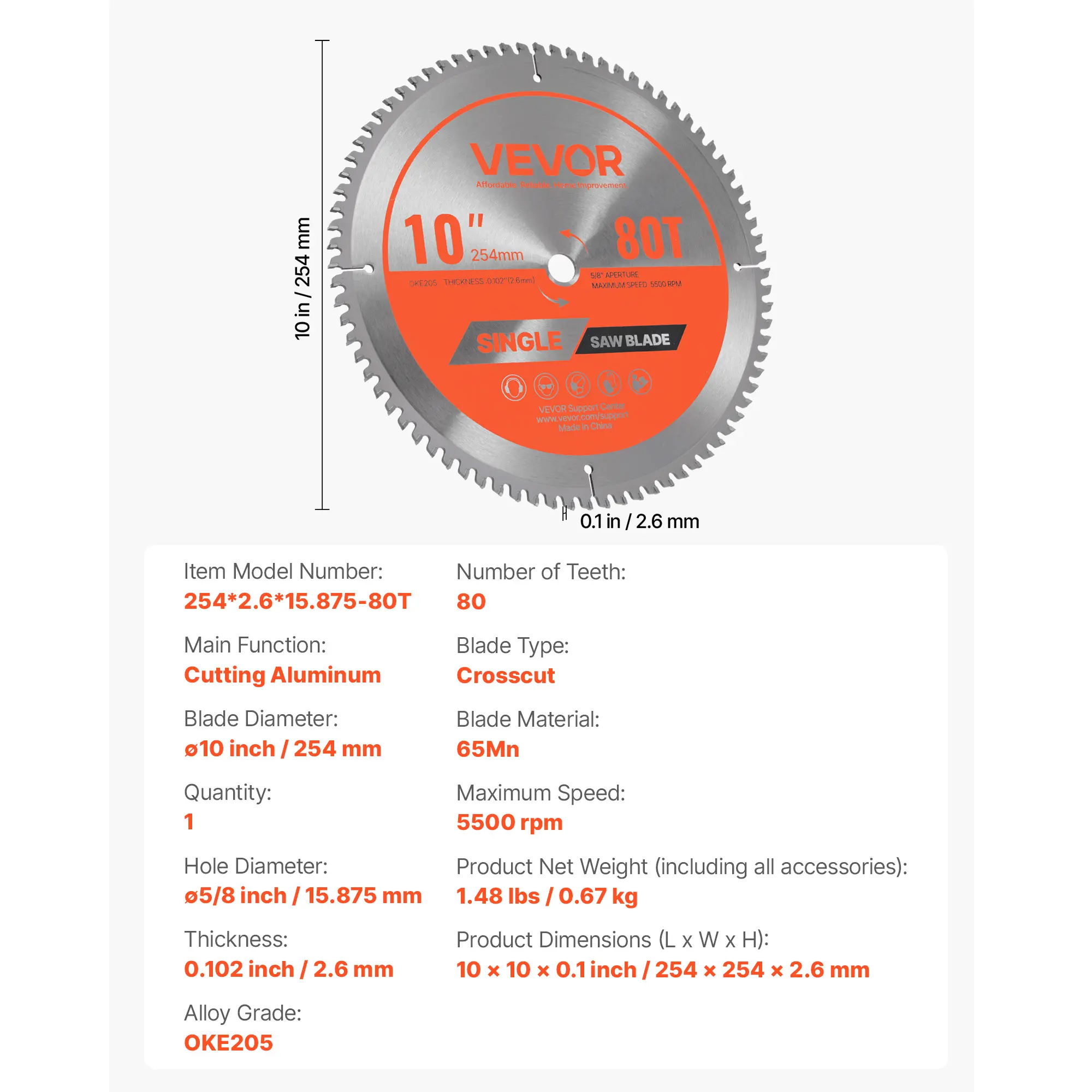 • Efficient Cutting Performance: This 10 inch circular saw blade handles a wide range of materials with ease. Equipped with 80 sharp teeth and a max speed of 5500 RPM, it ensures fast and precise cutting every time