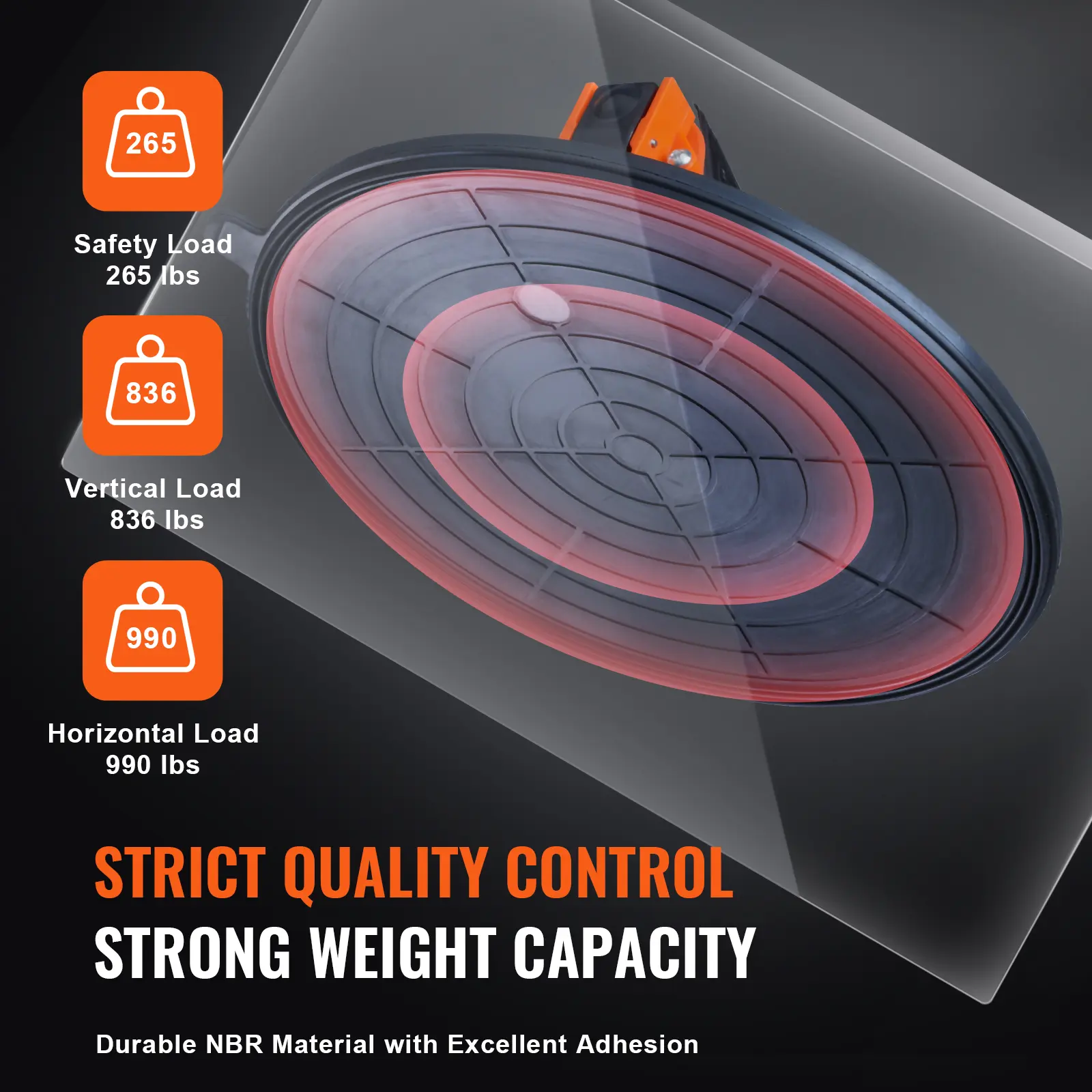 VEVOR Glass Suction Cup, TikTokShopBlackFriday, 10" 990 lbs Load Capacity, Vacuum Suction Cup with Steel Handle & Carry Box, Heavy Duty Industrial Suction Cup Lifter Tool for Glass, Granite, Tile, Metal, Wood Panel Lifting