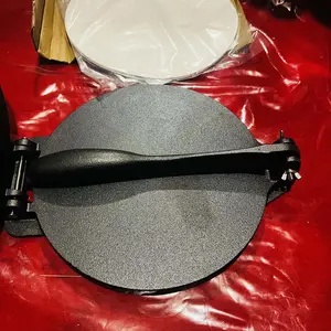 This hand-pressed tortilla press has an extra-large size, making it easy to press various dough types. It's larger than a standard corn tortilla press, and flour tortillas require a larger pressing area. Tip: Corn tortillas are best pressed with a smaller diameter.