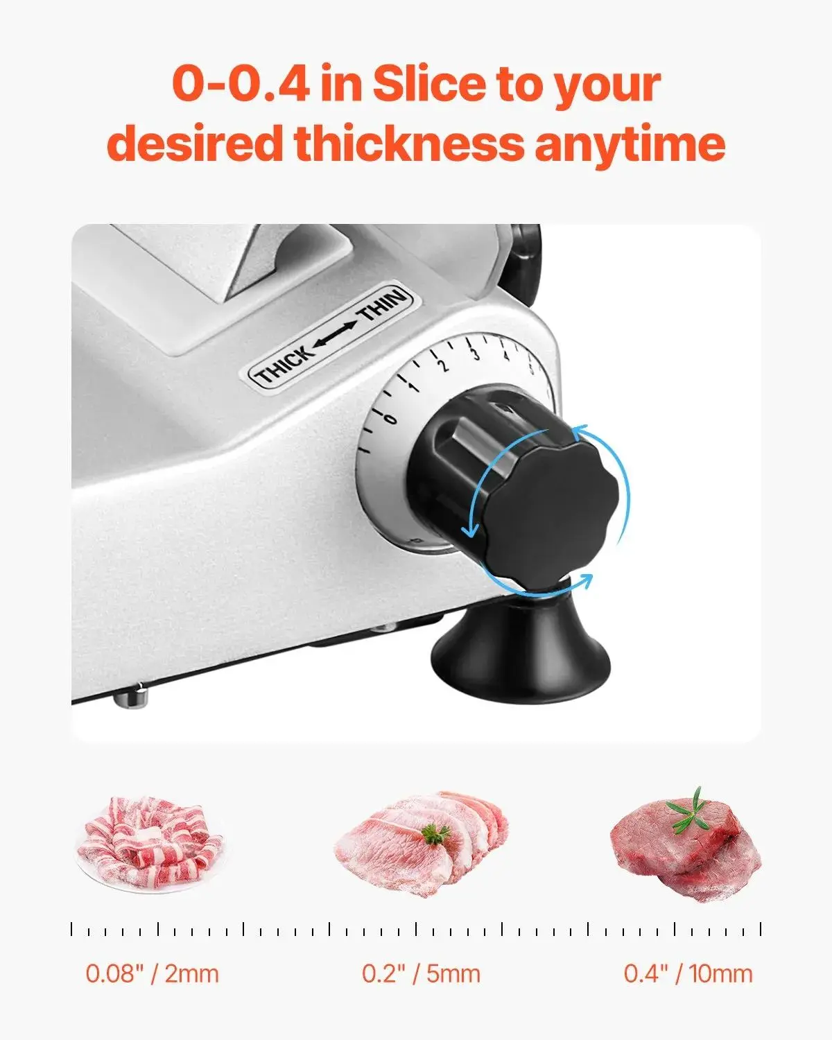·The slicer has a thickness adjustment knob with a range from 0-0.4 in (0-10 mm). You can customize the thickness to meet your needs, ideal for hamburgers, sandwiches, and more. 🍔