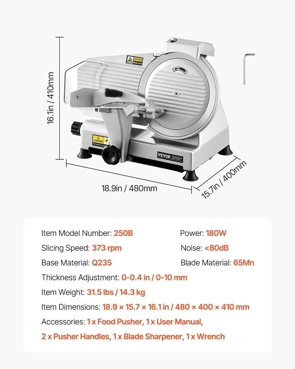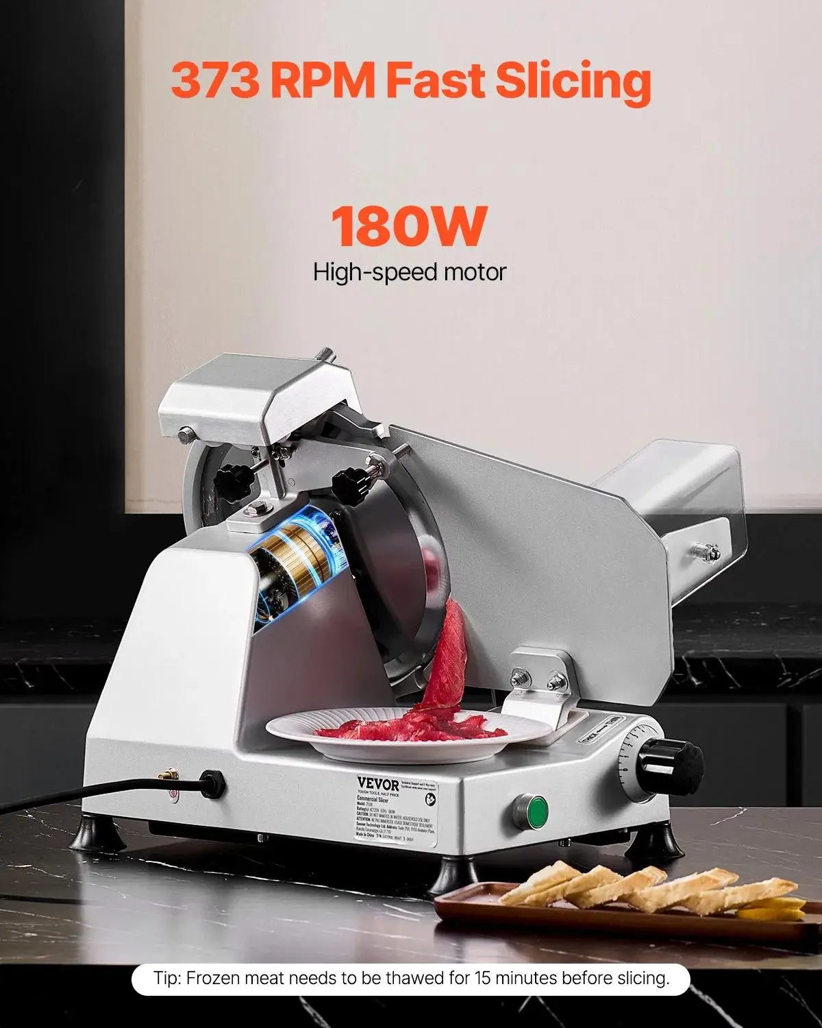 ·Powered by a 180W motor running at 373 rpm, this electric meat slicer allows for quick slicing of ingredients. It significantly enhances your work efficiency. 🚀