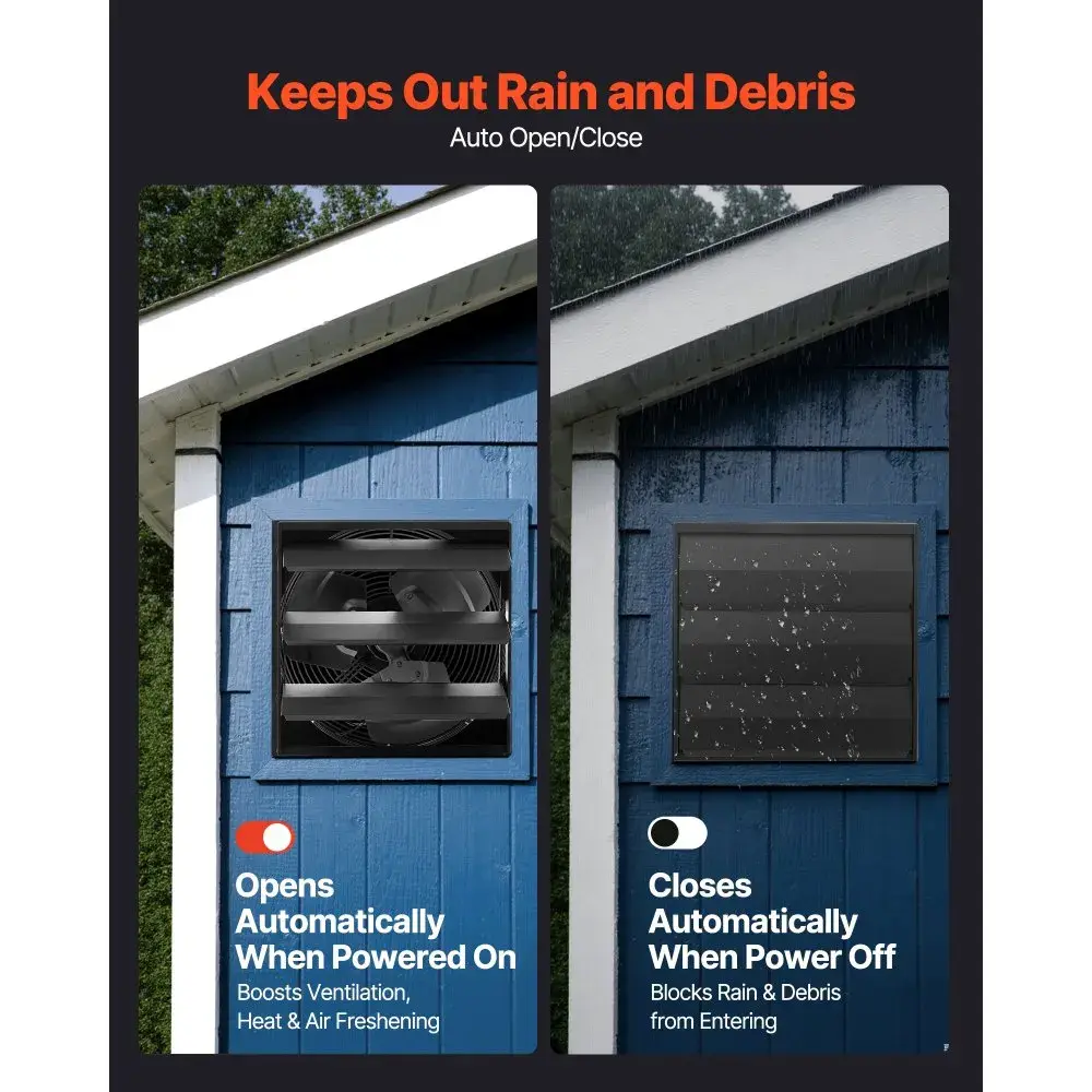Shutters open when powered for ventilation and deodorizing, then close when off to block rain and small things. This reliable protection ensures an effective attic exhaust fan setup.
