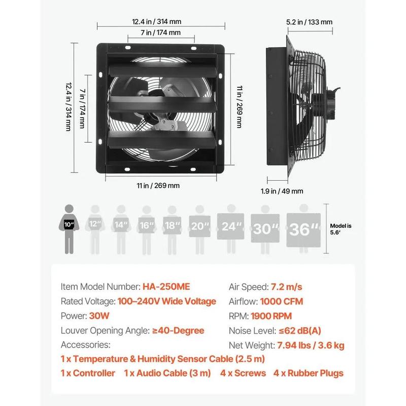 This shutter exhaust fan delivers 2000 CFM to quickly expel stale air, floating dirt, heat, and smells. It keeps indoor air fresh and works as a high-airflow exhaust fan for sheds and workshops. Perfect for maintaining a clean and comfortable environment.