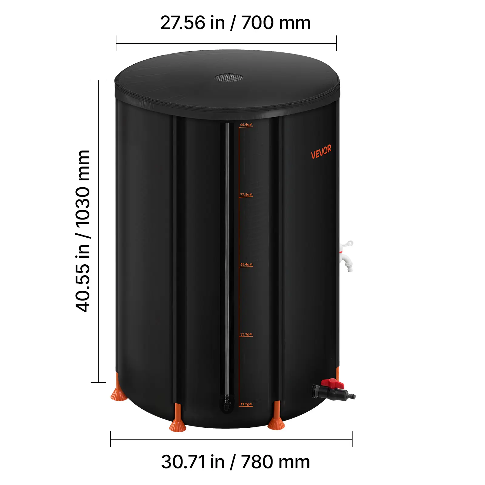 The transparent barrel with scale lines allows easy water level checks. A wide mesh top and two taps offer fast water access. Perfect for gardens, farms, and outdoor use.