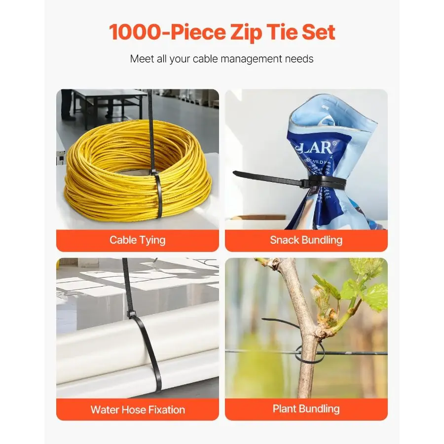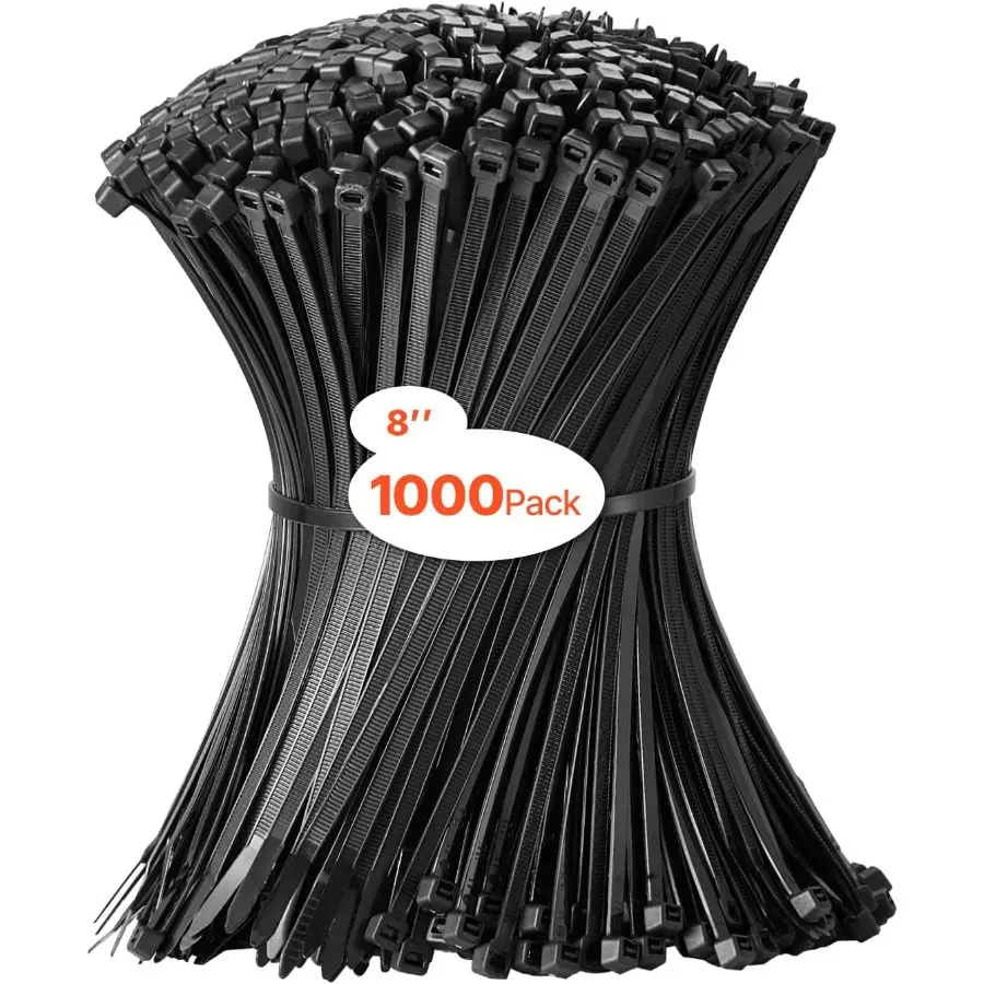VEVOR 1000 Pack Cable Zip Ties, 8 - inch Heavy Duty Cable Wire Ties with 45LBS High Tensile Strength, Multi - Purpose Self - Locking Nylon Tie Wraps, Heat Cold Resistant for Indoor and Outdoor UseVEVOR 1000 Pack Cable Zip Ties, 8 - inch Heavy Duty Cable Wire Ties with 45LBS High Tensile Strength, Multi - Purpose Self - Locking Nylon Tie Wraps, Heat Cold Resistant for Indoor and Outdoor Use