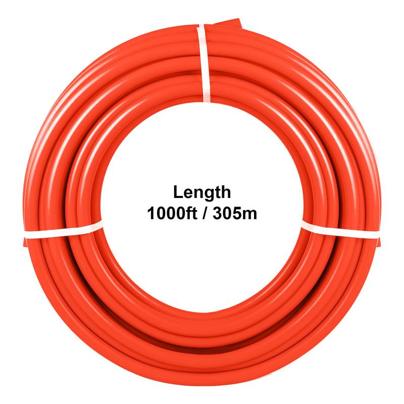 ·【RELIABLE PEX MATERIAL】- Color: Red; Nominal Diameter: 1/2"; Total Length: 1000 ft. Outside Diameter: 5/8"; Inner Diameter: 1/2"; Keep quick & smooth hot/cold water flows. Made of PEX material, non-toxic, crack-proof, leak-proof. Perfect for potable water or radiant floor water use.