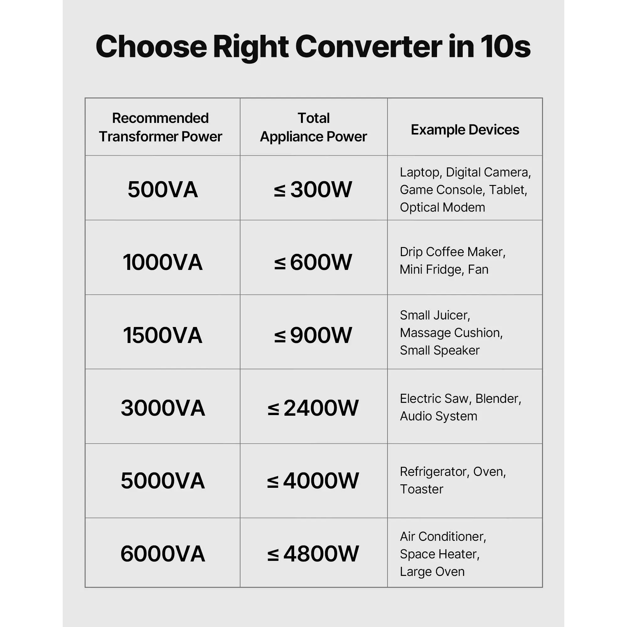 • 1000VA Voltage Converter Transformer: Includes four AC outputs—two standard US output socket and two EU output socket. For optimal results, choose a step up down power converter rated at least 40% higher than your device’s total wattage