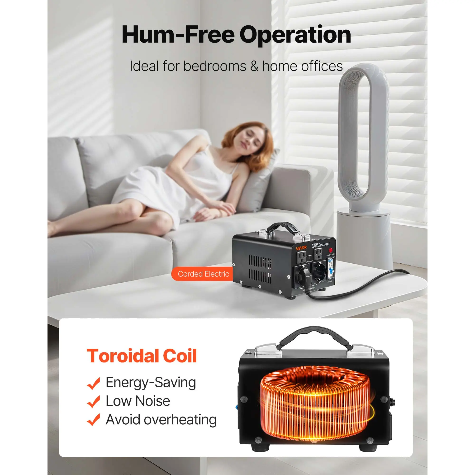 • Efficient & Quiet Operation: The quality toroidal coil reduces noise, heat, and weight, ensuring precise and stable voltage output. This step up down converter delivers smooth, near-silent performance, even during long sessions