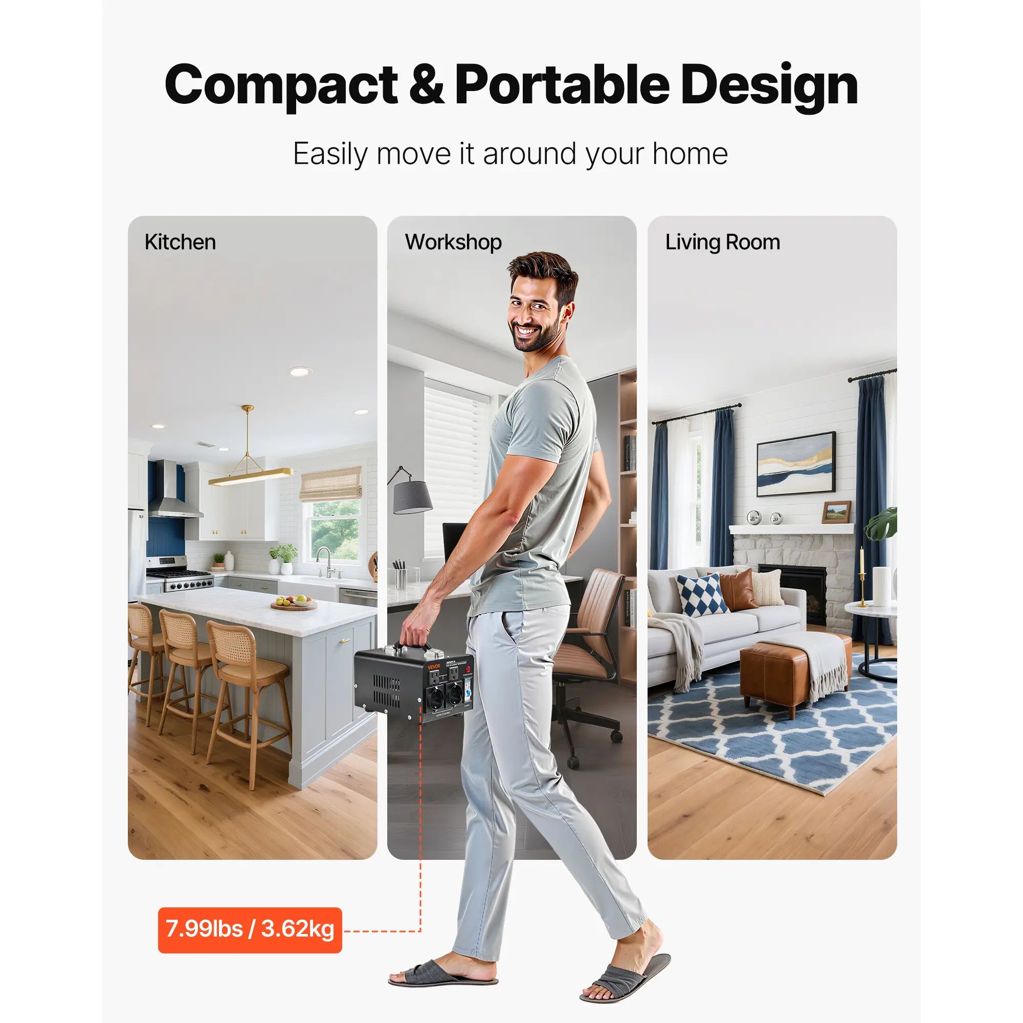 • Compact Size, Big Convenience: The compact body takes up minimal space, while a top handle makes it easy to move around the home or travel with. Whether you're at home or abroad, our step up step down transformer powers your electronics anywhere