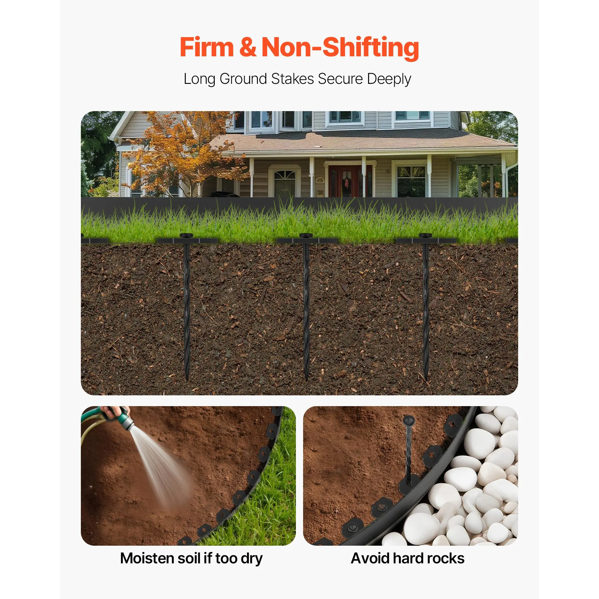 • Easy to Set up: Simply lay the lawn edging along the edge and hammer the included spikes through the holes—no digging or concrete needed.