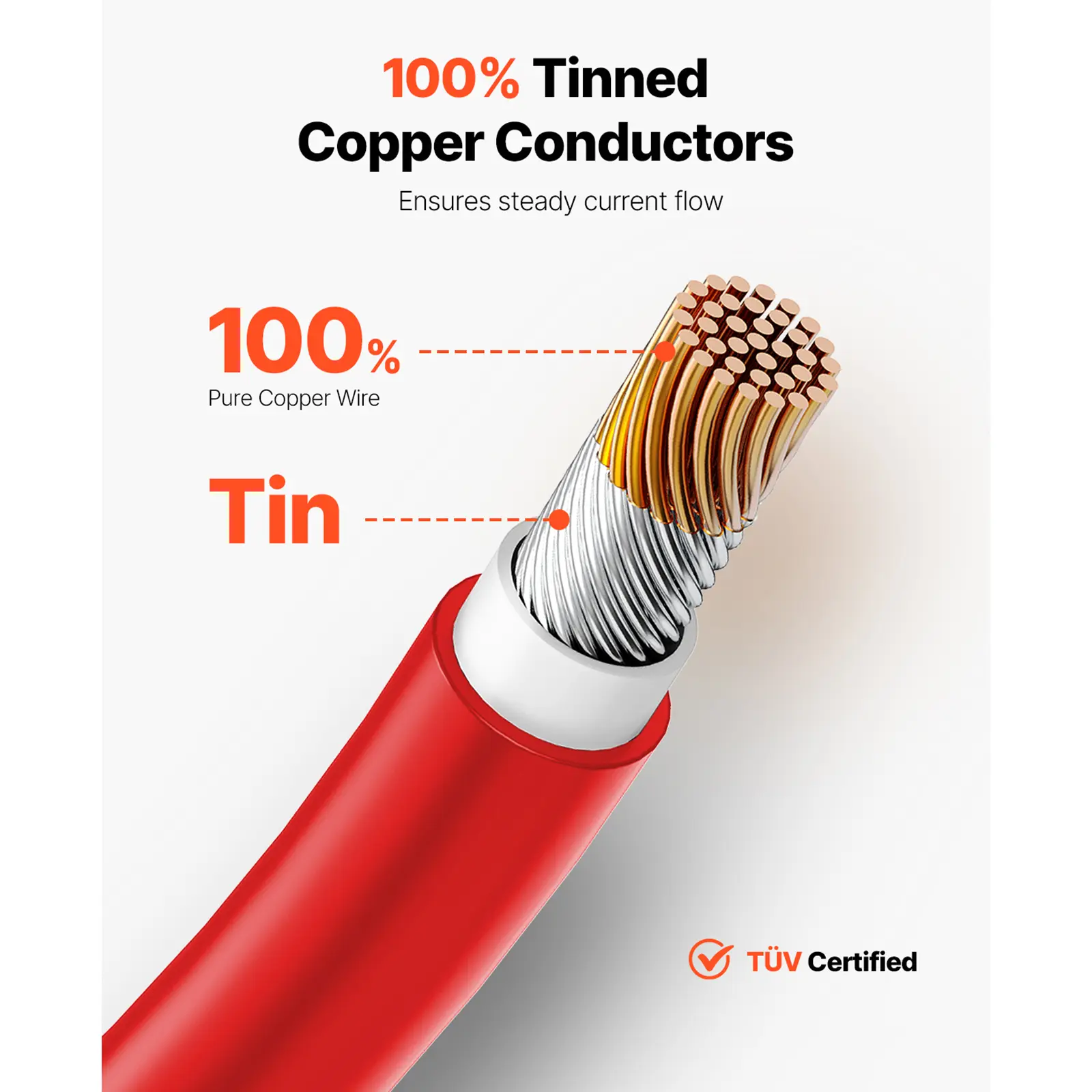 • Excellent Electrical Conductivity: Made with 100% tinned copper, this solar panel extension cable delivers efficient power transfer with low resistance. Even in tough weather conditions, it keeps your solar system running smoothly by reducing energy loss and boosting performance.