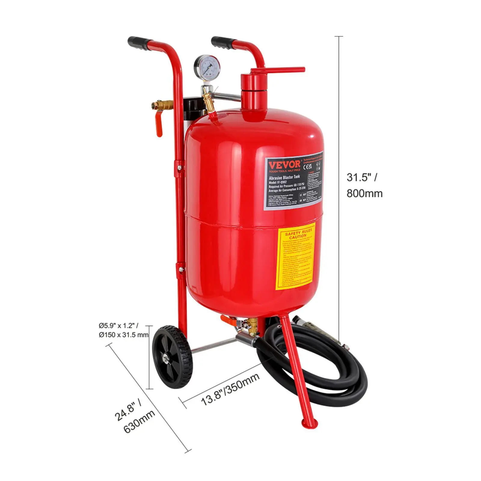 VEVOR 10Gal/40L Sandblaster Equipped with Nozzle Shut-Off Valve Pressure Gauge Ceramic Nozzle 2.5m Hose Filling Funnel Watertrap 6\" Rubber Wheels Grit Power Sand Blasters Portable Sandblasting Equipm