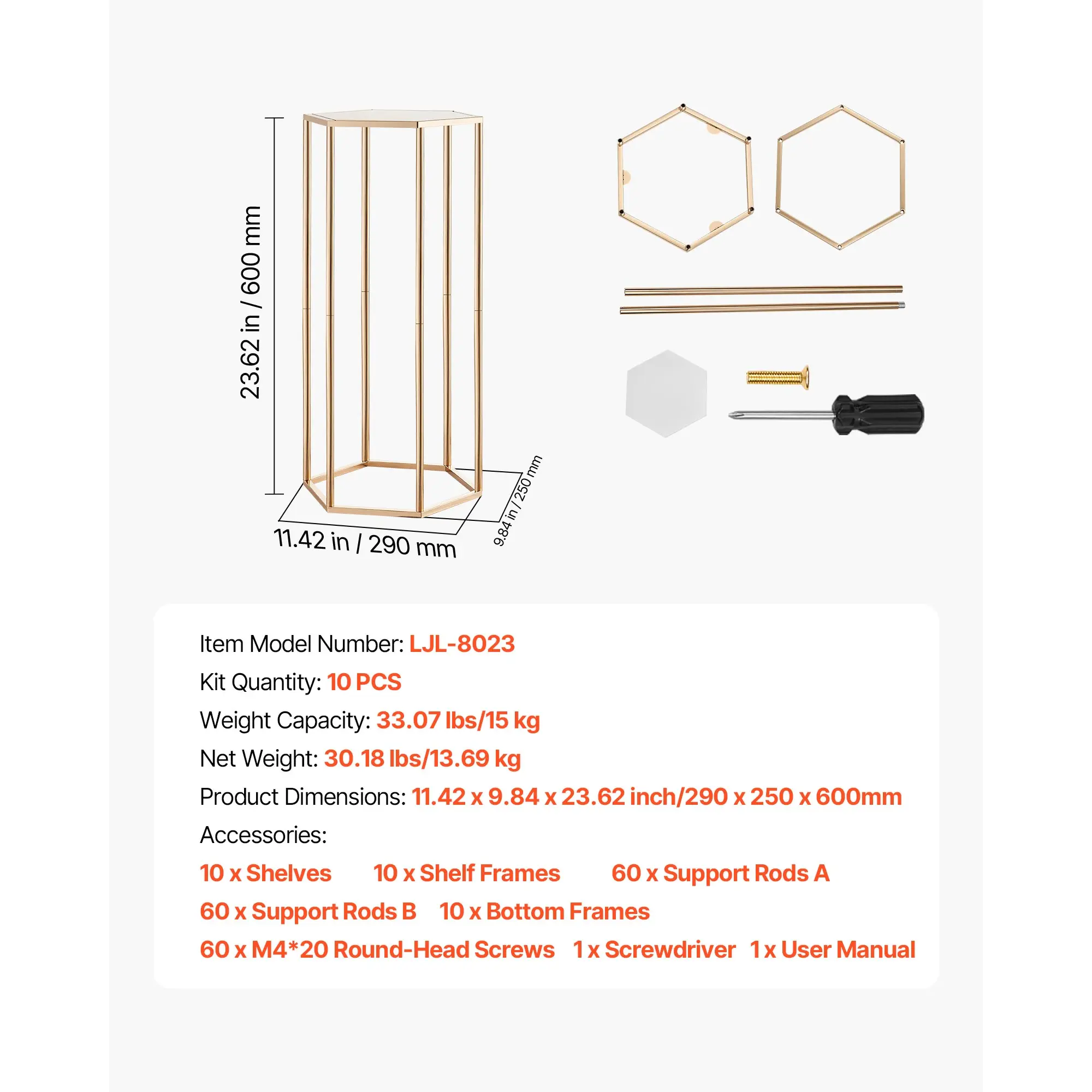 • Elegant Design: Featuring a classic hexagonal cube design, our geometric centerpiece stand offers an elegant appearance while evenly distributing weight for stability. With a weight capacity of 33.07 lbs/15 kg, it ensures secure placement of your décor, adding a unique touch to weddings, parties, or celebrations