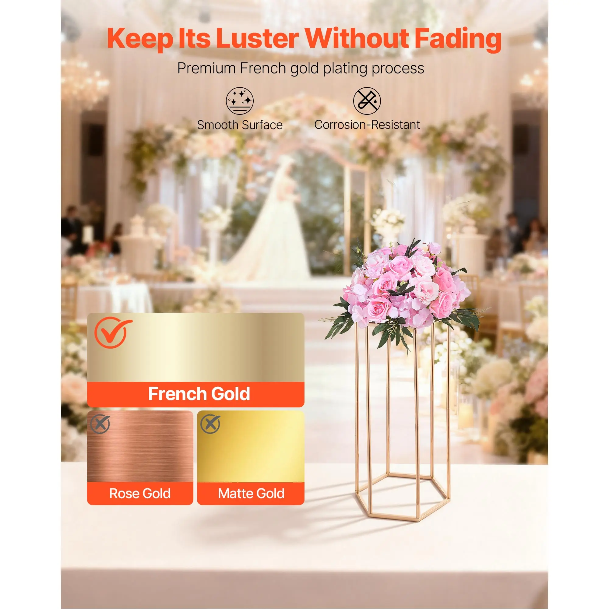• Premium Gold Finish: Using a premium French gold electroplating process, our geometric centerpiece vase has a smooth, elegant surface with a radiant gold shine. Its outstanding corrosion resistance ensures it retains its vibrant color, adding a luxurious and romantic touch to your wedding décor
