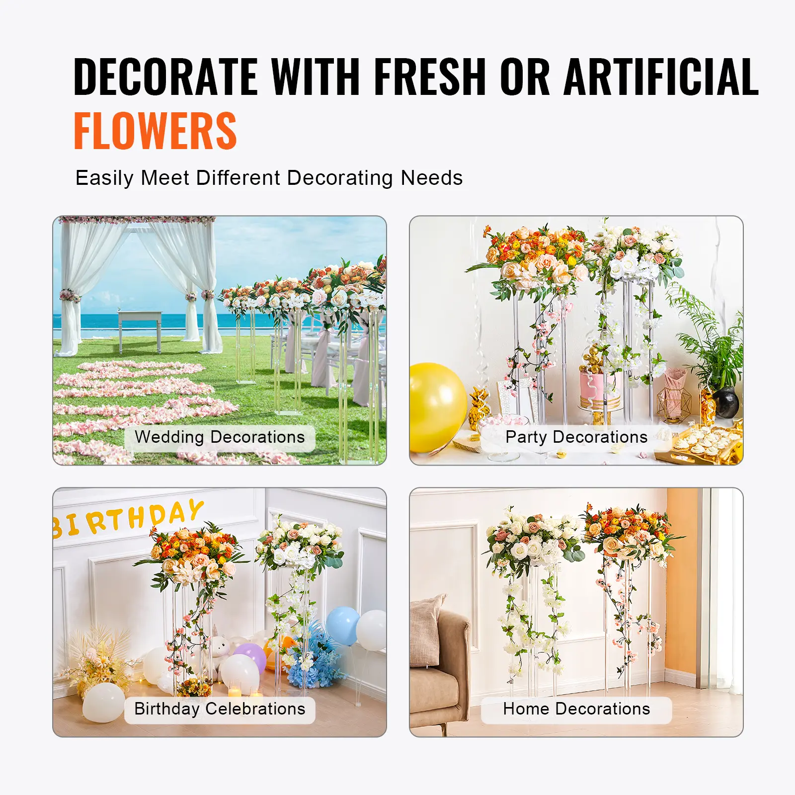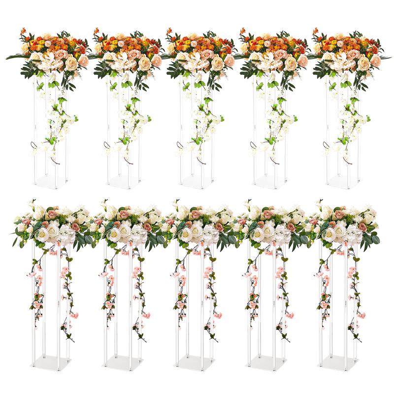 • Easy Assembly: Assemble this wedding flower stand in just four easy steps: Install the square frames, assemble the acrylic round tubes, connect the top and bottom frames to the columns, and place the acrylic layer boards on top and bottom. No tools needed, and it only takes a few minutes.