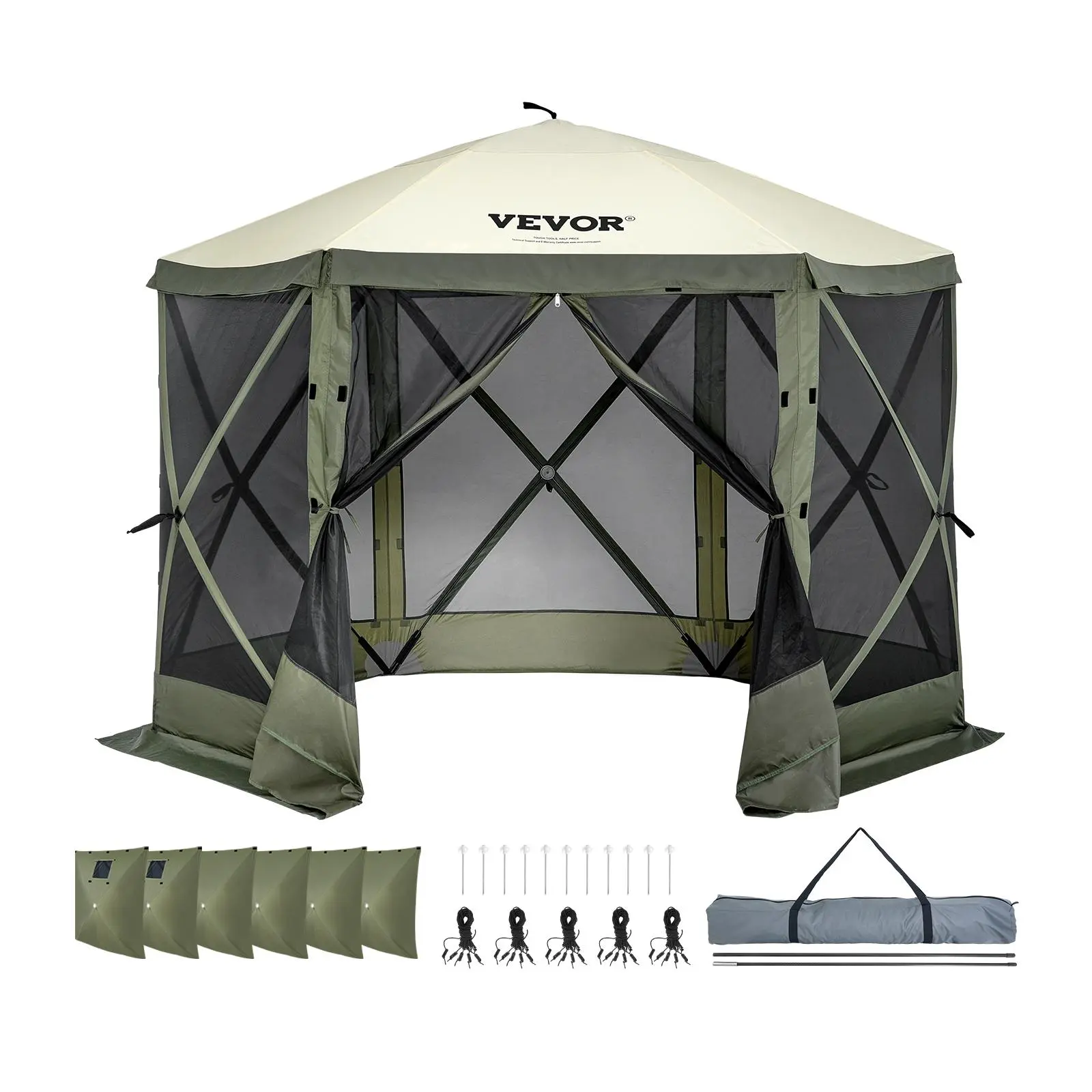 • 6 Windproof Cloths: The camping gazebo comes with 6 detachable and installable windproof cloths, providing you with a secluded private space outdoors. Two of the windproof cloths have windows to ensure air circulation and provide a comfortable user experience.
