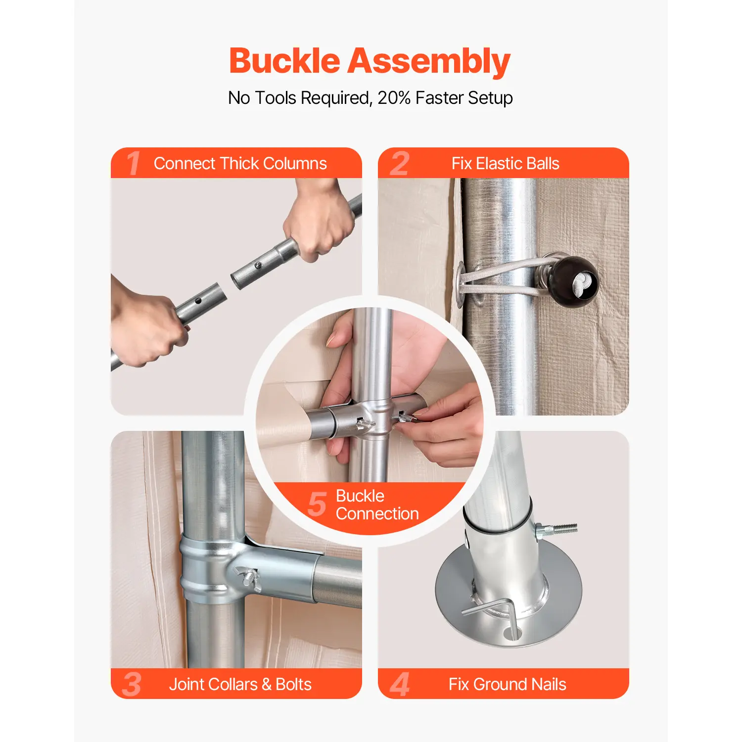 • Buckled Easy Assembly: This outdoor portable storage shelter can be quickly and easily assembled using buckle connectors with T-joints and cross joints, requiring no tools. With detailed assembly instructions, it ensures a fast and straightforward one-on-one connection.