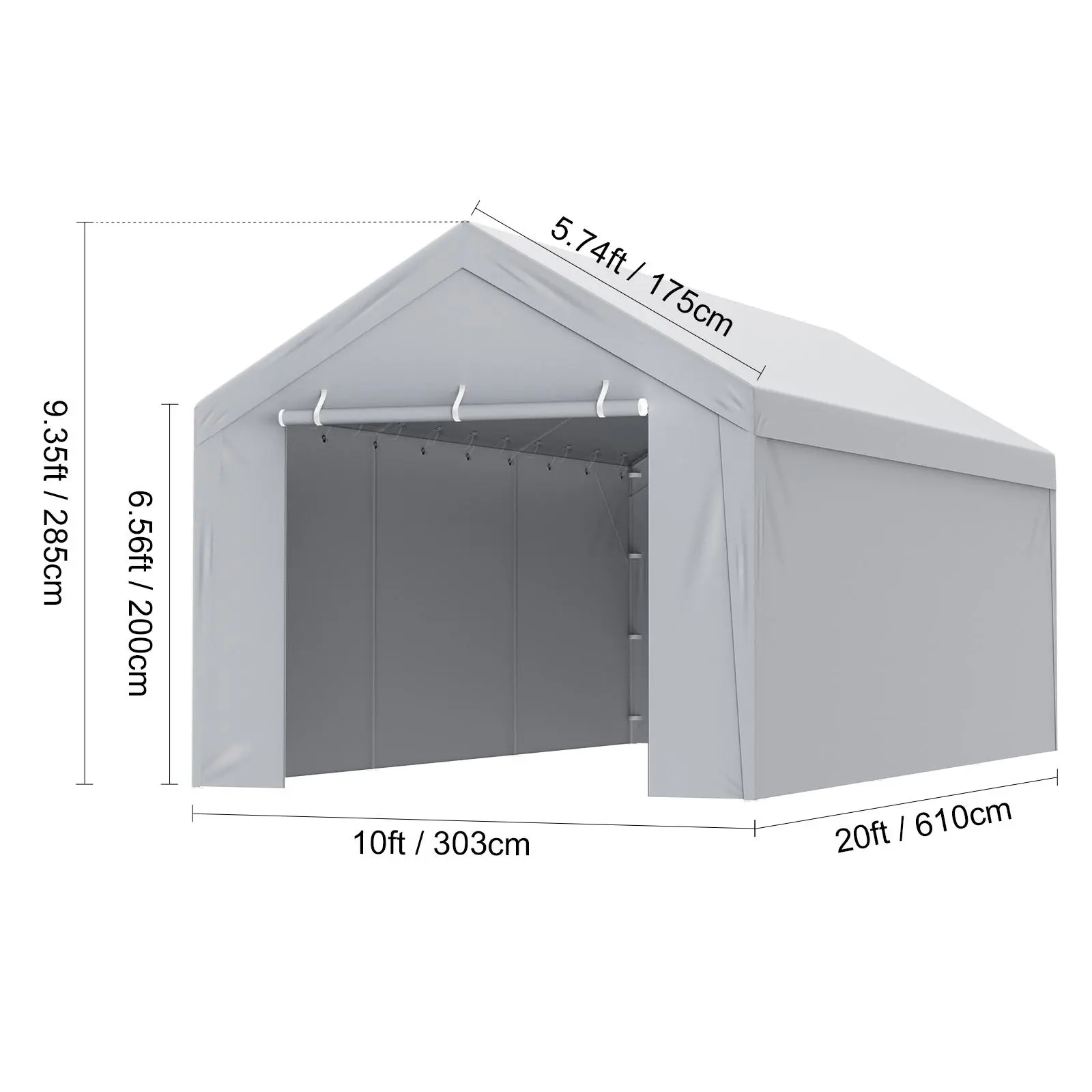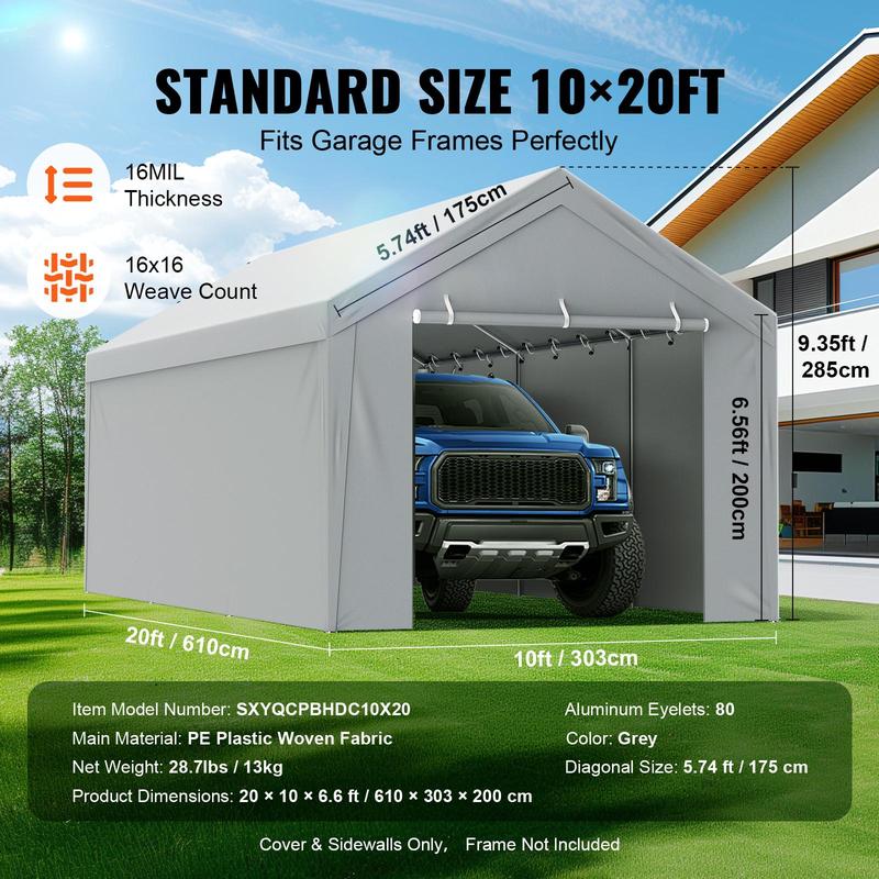 • 10'x20' Size: This canopy fabric, including both the top and side panels, features a 5-panel front door with a dual zipper structure. It is designed for replacing canopy fabric on 10'x20' garage frames. The space is ample, and the dimensions are perfectly fitting (this product includes only the canopy fabric, frame not included).