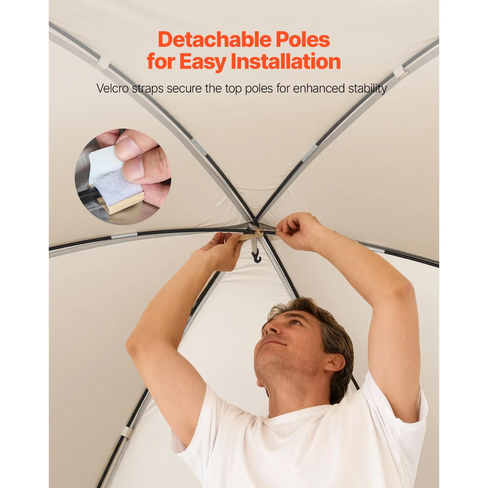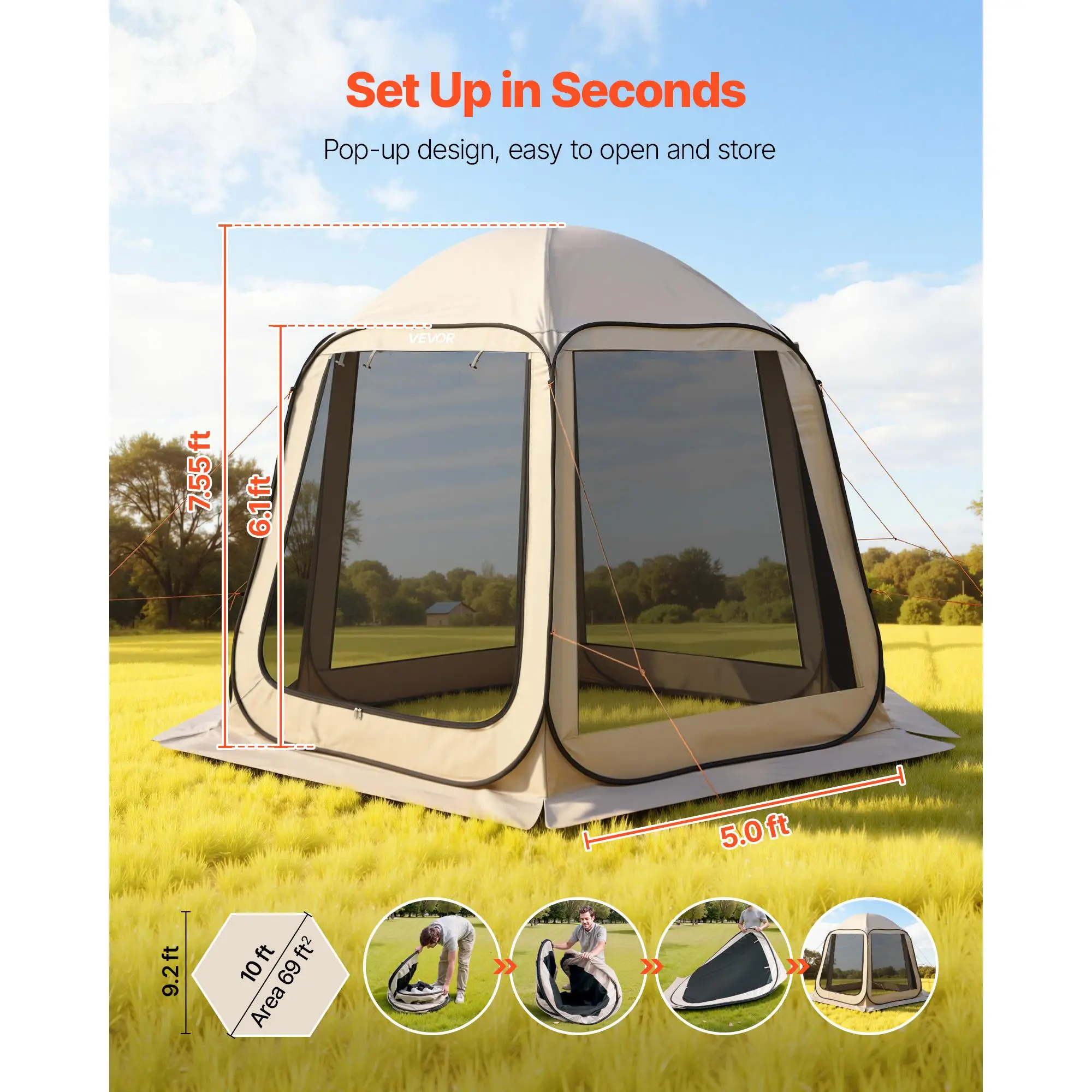 • Stable & Windproof Structure: Reinforced fiberglass and steel poles keep the pop up screen tent upright even in windy conditions. The curved top design avoids water pooling and sagging
