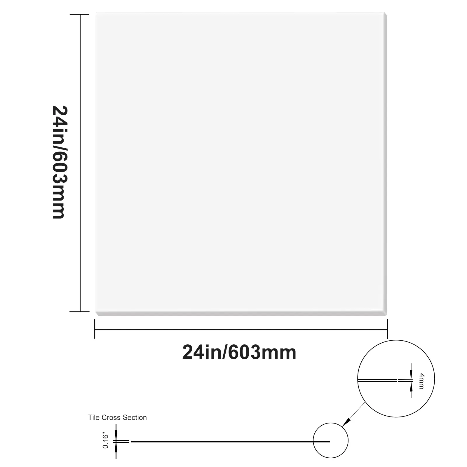 • 24” Ceiling Tiles: These square tiles measure 24”x24” with a smooth design, and come in a pack of 12, covering 48 square feet. Refresh your space with a clean, modern look.
