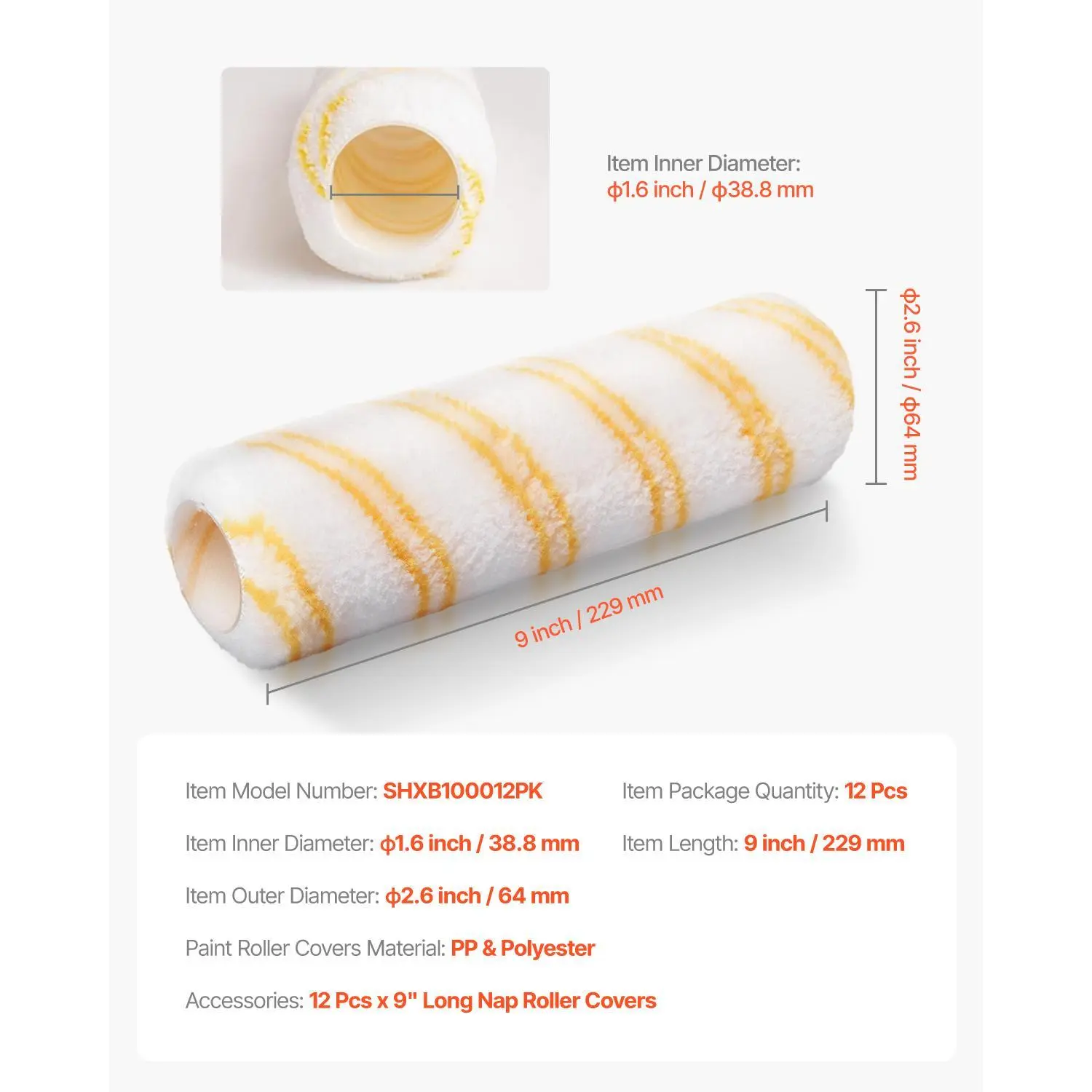 • 3/8" Nap Thickness: The 3/8" nap thickness of our 9" paint rollers holds ample paint while ensuring smooth and consistent coverage. It reduces the time spent on reapplication and produces professional-quality results.