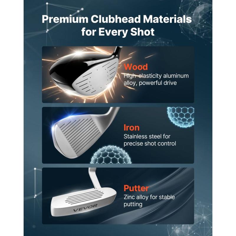 VEVOR Golf Club Set, 12 Pieces Women's Golf Club Complete Set Right Handed with 460CC #1 Driver, #3 5 Fairway Wood, #4 Hybrid, #5/#6/#7/#8/#9/#PW/#SW Irons, L - Shaped Putter, Golf Stand Bag, OrangeVEVOR Golf Club Set, 12 Pieces Men's Complete Golf Club Set Right Handed with 460CC #1 Driver, #3 & 5 Fairway Wood, #4 Hybrid, #5/#6/#7/#8/#9/#PW/#SW Irons, L-Shaped Putter, Golf Stand Bag, Black Golf Club Complete Set for Men 12-Piece Complete Golf Set for Men Long Distance & High
