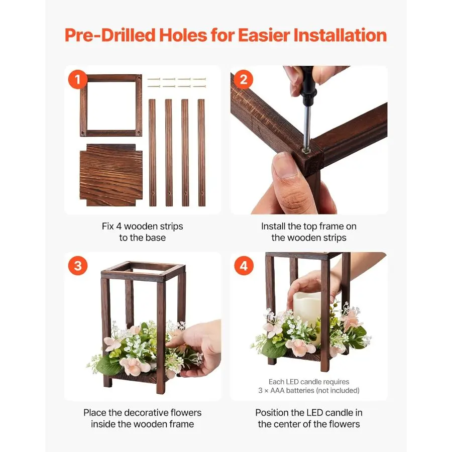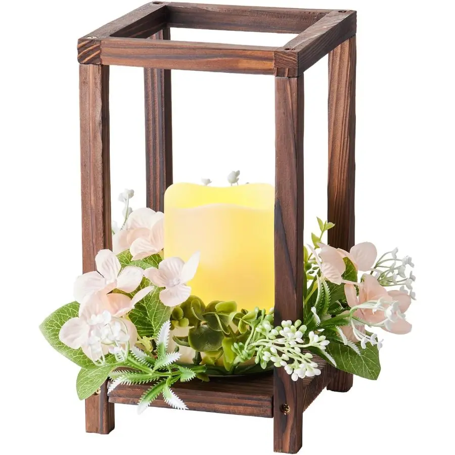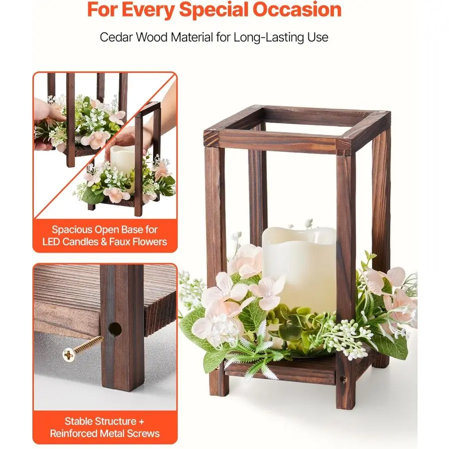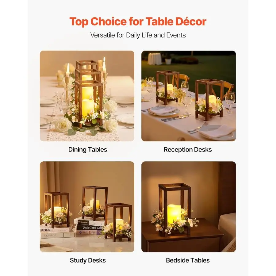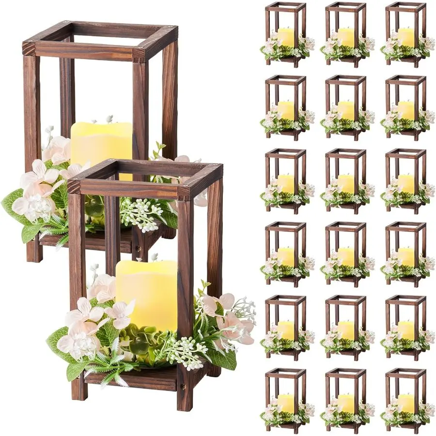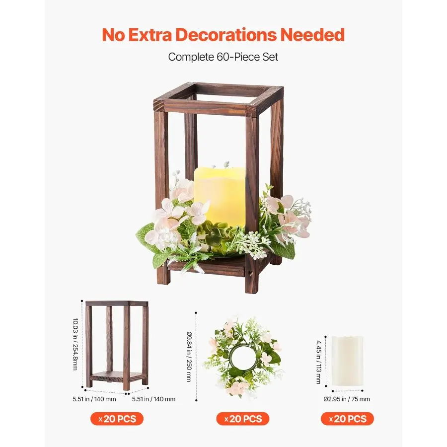 5. VEVOR 12 Set/36 Pcs Wooden Wedding Lantern Centerpiece, Includes 12 Wooden Lantern Candle Holder 12 Flameless LED Candle 12 Eucalyptus Leaves Wreath for Wedding Table Party Farmhouse Decor, White