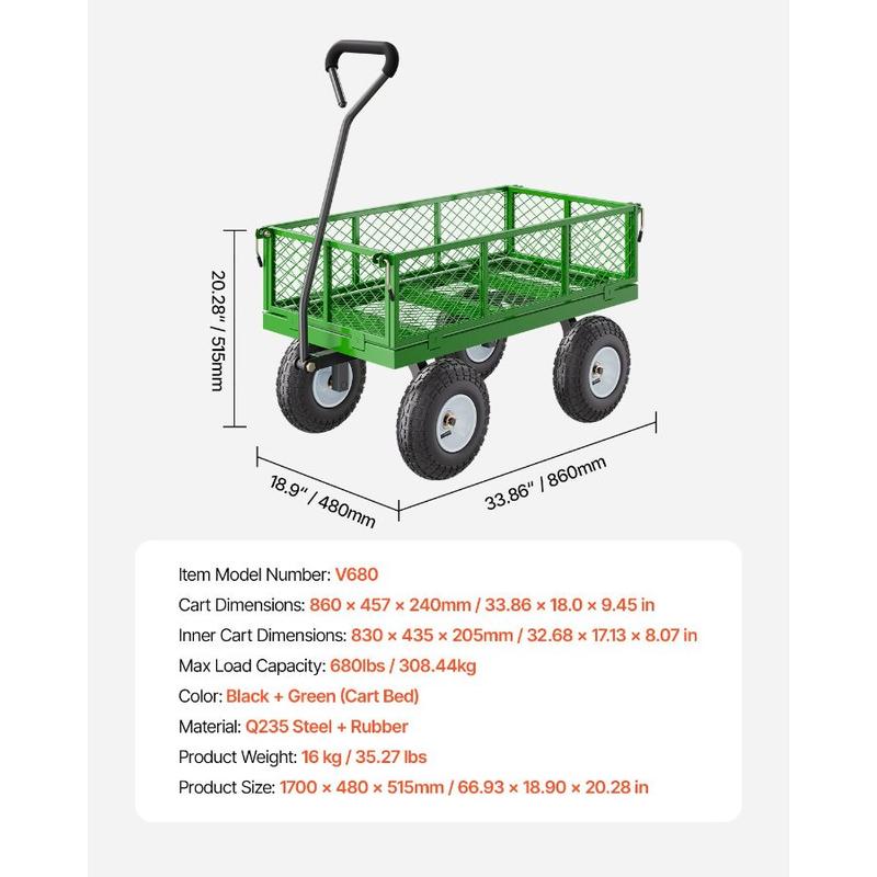 VEVOR 1200 Lbs Steel Garden Cart, Heavy Duty Pullable Garden Wagon Yard Cart, 2 in 1 Outdoor Metal Utility Wagon Yard Trailer with 13 All Terrain Tires, Mesh Removable Sides and 180Rotating HandleVEVOR 680 Lbs Steel Garden Cart on Wheels, Heavy Duty Garden Wagon Cart Pullable, Metal Outdoor Utility Yard Wagon Carts with 10" Tires, Mesh Removable Sides and 180°Rotating Handle Make Gardening and Farming Easier 2-in-1 Design All-Terrain Rubber Tires Ergonomic Adjustable