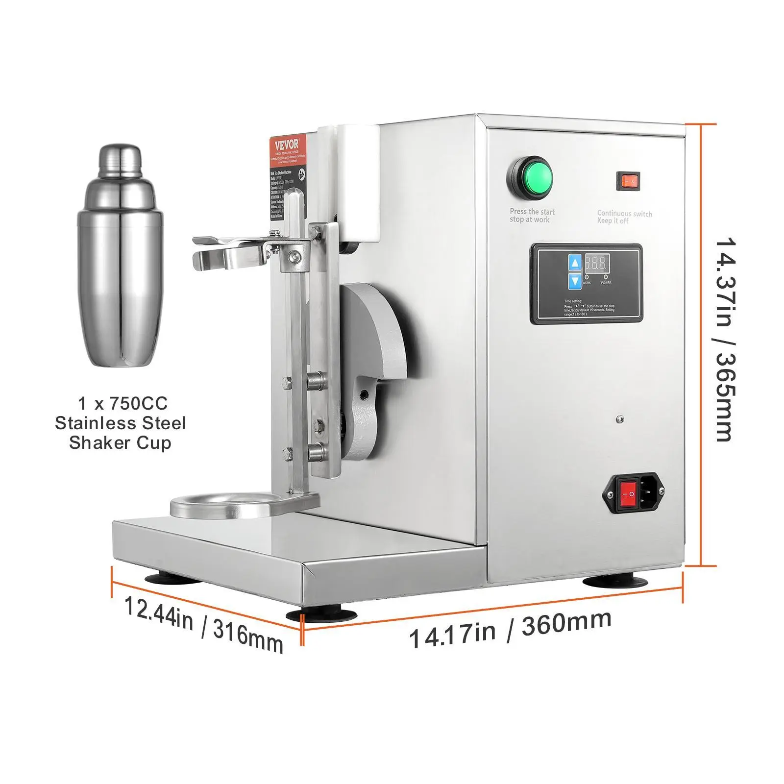 • Compatible with Multiple Shaker Cup Sizes: You can quickly adjust the height of the shaker machine's holder to fit different sizes of shaker cups, ranging from 350ml to 750ml, ensuring each beverage is uniformly and swiftly shaken. Includes a 750ml stainless steel shaker cup that is easy to clean and does not retain flavors, suitable for use in all types of dining establishments.