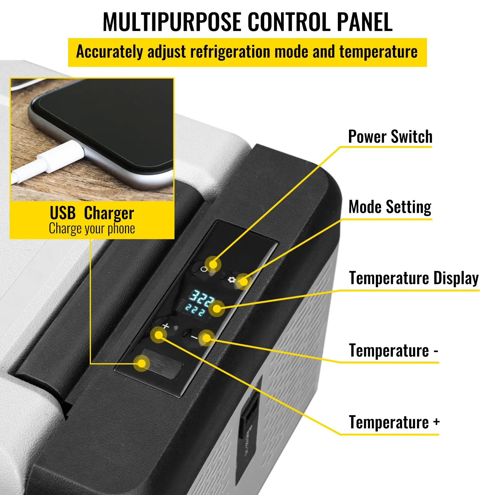 • Efficient Refrigeration: With compressor refrigeration technology, this 12V car freezer can achieve fast cooling from 68℉/20℃ to -4 ℉/0℃ in 15 minutes, keeping your food fresh. There are two modes for you to choose from: the ECO mode for energy-saving efficiency or the MAX mode for fast cooling.