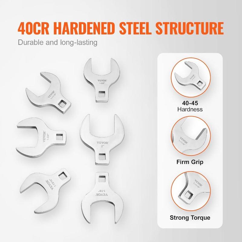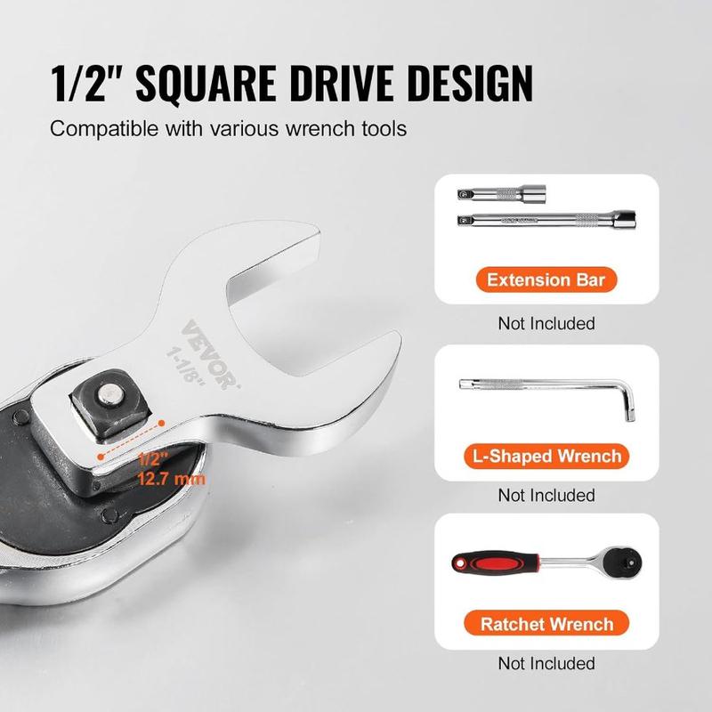 5. VEVOR Crowfoot Wrench Set, 1/2 Drive 14 - Piece SAE (1 - 1/16 - 2) Crows Foot Wrench Set with Storage Tray, 40CR Material with Laser Etched Sizing, for Mechanical Maintenance or Repairs