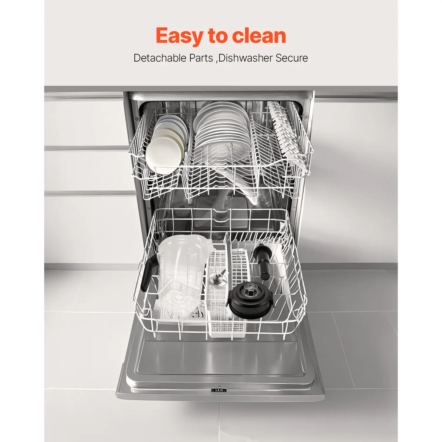 Cleaning is a breeze—just add detergent and warm water. Self-clean in 30-60 seconds. The detachable jar and tamper are dishwasher-secure for added convenience. Keep your blender clean and ready for use with minimal effort.